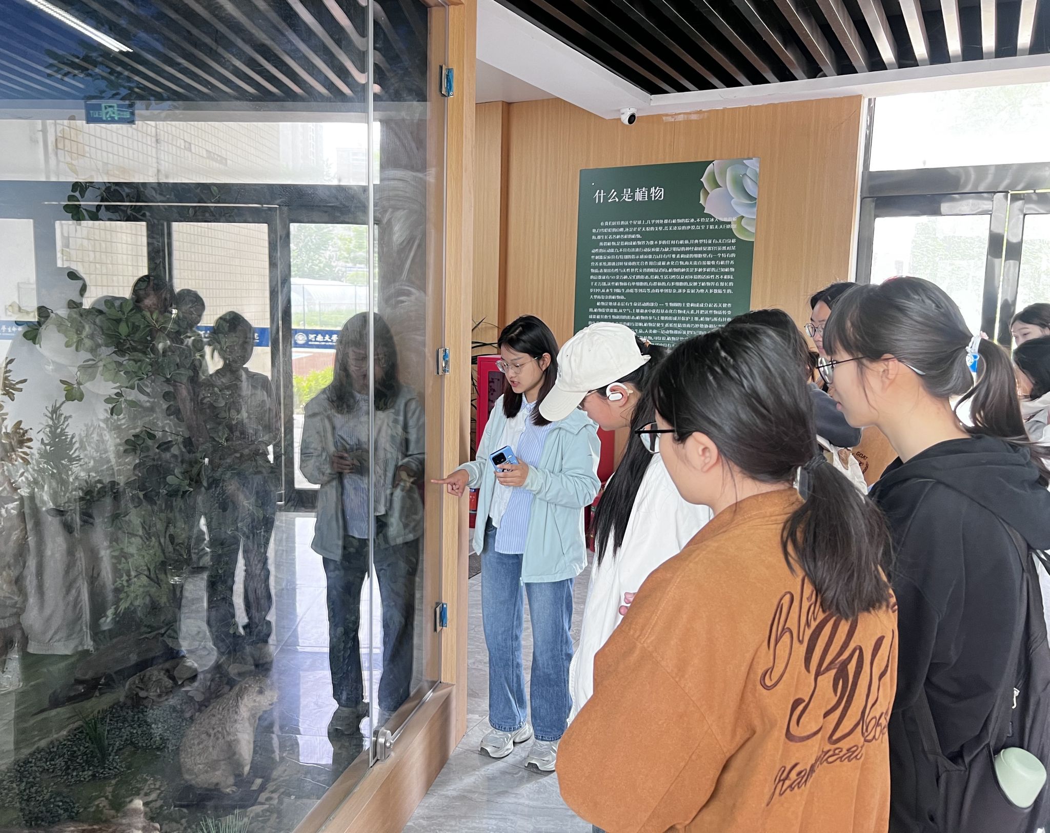 参观之余,党支部组织同学们开展“我为标本代言”交流互动环节。同学们随机选取标本馆内陈列的标本,从科学价值、生态意义及背后的人文故事三方面进行讲解。2022级植物科学与技术专业黄璐璐以“土拨鼠:草原上的‘建筑师’与‘天气预言家’”为题,介绍了土拨鼠的外貌形态、生活习性及其生态价值。她说到,尽管土拨鼠适应力较强,但栖息地破坏、气候变化及人为捕杀(因皮毛或视为害兽)已导致部分种群减少甚至灭绝,保护野生动物是人类社会可持续发展的必由之路。同时,有些同学也提到,中国将喜马拉雅旱獭列为“三有保护动物”,北美多地也设立保护区,人类远观不打扰、拒绝购买野生动物制品,就是对它们最好的保护。作为当代大学生,保护动植物及其生存环境是同学们义不容辞的责任和使命。