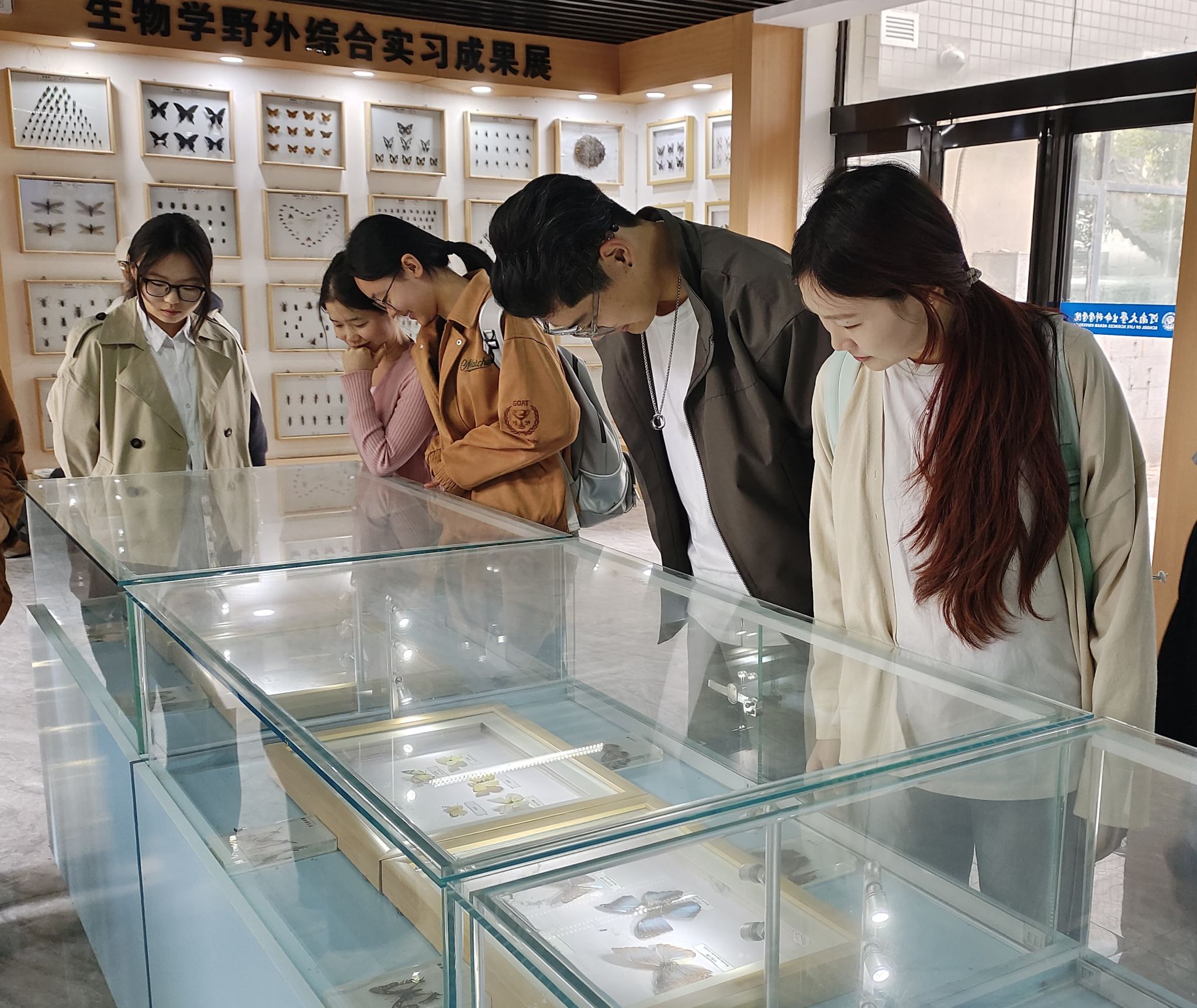 走进标本馆,映入眼帘的是各种动植物标本,包括哺乳动物、鸟类和昆虫等共计几百件标本,每一件都是大自然与人类智慧碰撞的结晶。精致的昆虫标本,每一只蝴蝶都被精心呵护保存,翅膀上的纹路清晰可见,宛如一件巧夺天工的艺术品。同学们漫步在各类标本之间,不时驻足凝视,轻声交流。支部党员化身专业讲解员,深情地讲述着每一件标本的由来、制作的过程与其背后的故事。2022级本科生王莉晨神情专注,眼中满是崇敬与感动,面对这些艺术品发出了阵阵感慨,“这些标本不仅是科研的载体,更是一座座精神丰碑。”他说到,自己一定要努力学习专业知识,坚定理想信念,努力奋斗,让专注奋斗的生科精神在我们这一代人身上传承下去。