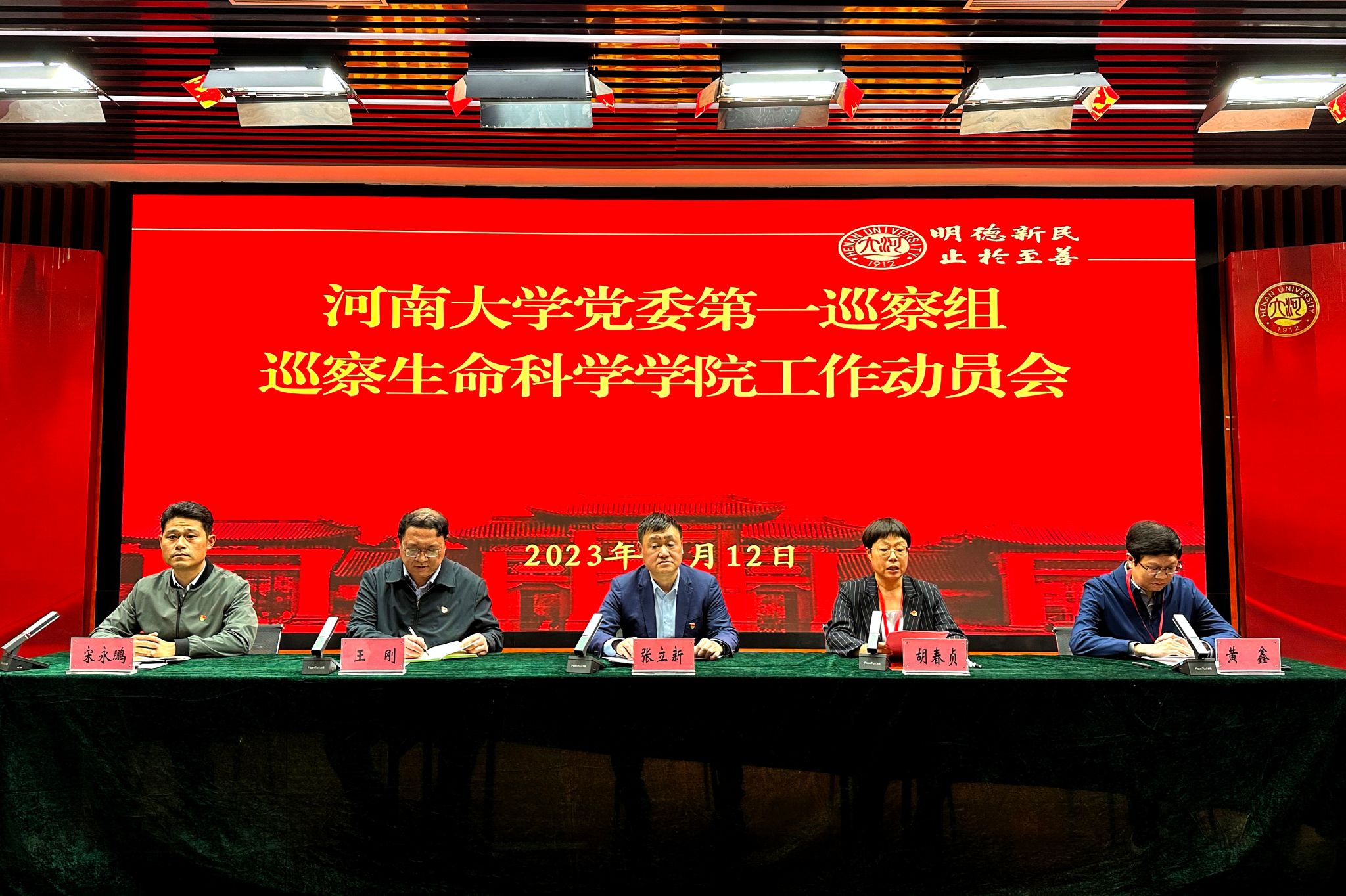 按照河南大学党委第七轮巡察工作的总体部署,10月12日下午,中共河南大学第十一届委员会第七轮巡察第一巡察组召开巡察生命科学学院党委工作动员会。校党委第一巡察组组长、正处级巡察专员胡春贞通报了巡察工作的主要任务、总体安排和工作要求,生命科学学院党委副书记、执行院长王刚作表态发言,河南大学学术副校长、生命科学学院院长张立新发表讲话,生命科学学院党委副书记宋永鹏主持会议。