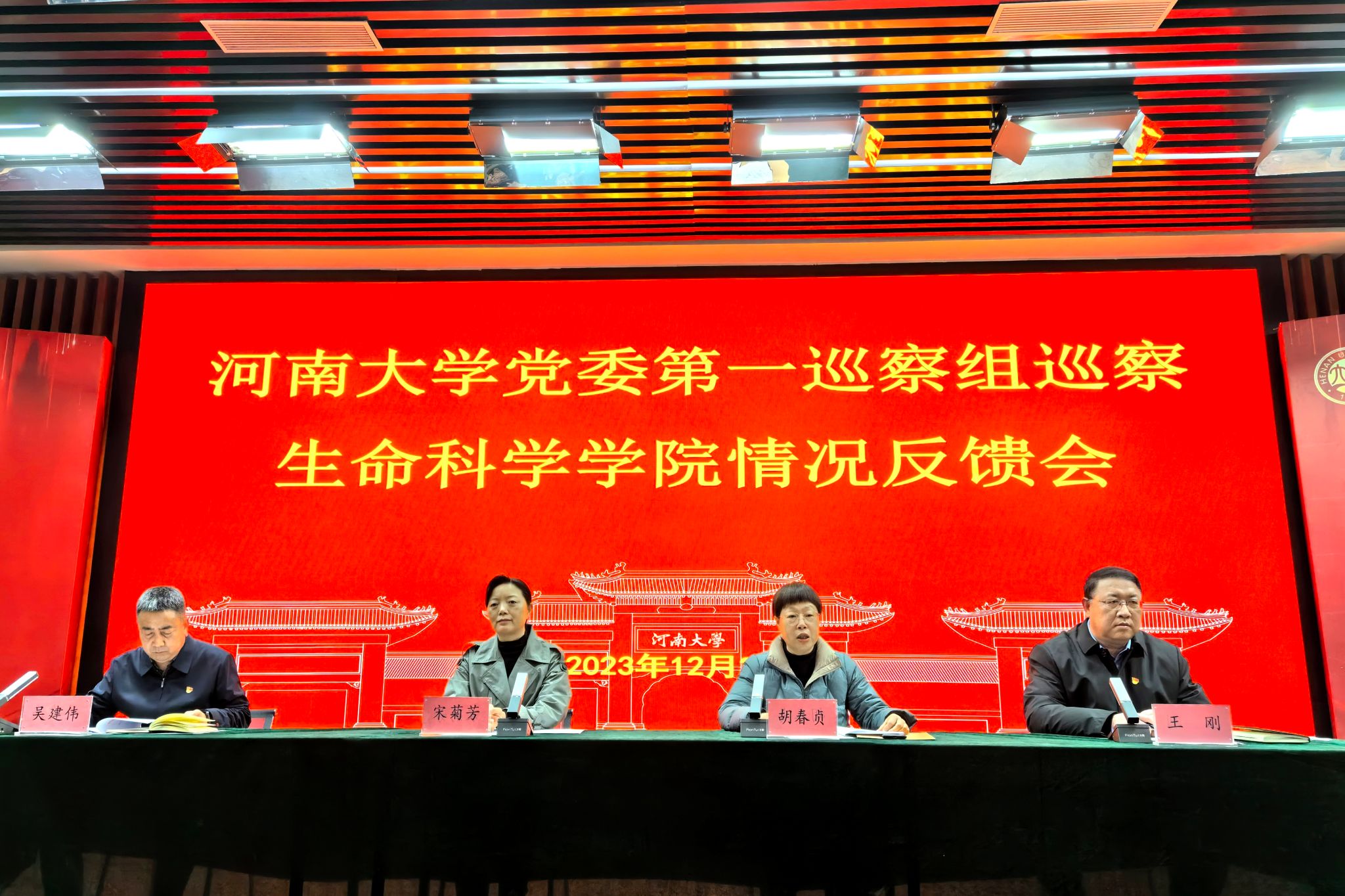 按照河南大学党委巡察工作领导小组部署,2023年12月28日下午,学校党委第一巡察组巡察生命科学学院党委情况反馈会在学院圆楼报告厅召开。反馈会上,校纪委副书记、党委巡察工作领导小组成员宋菊芳对巡察整改工作提出要求,第一巡察组组长胡春贞反馈巡察情况,学院党委书记吴建伟就做好巡察整改工作表态发言。巡察组成员、学院党委委员及班子成员、全体教工、离退休教师和学生代表参加会议。会议由学院党委副书记、执行院长王刚主持。