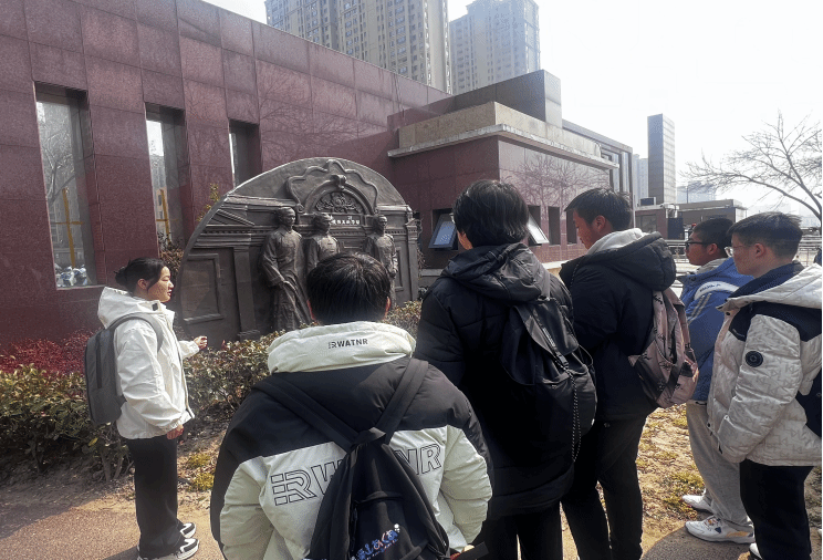 “1912年,为满足国家培养现代人才的需求以及填补河南近代教育的空白,河南都督张镇芳提议,经河南临时议会决议,河南留学欧美预备学校在河南贡院旧址诞生,首任校长林伯襄先生肩负重任……”。讲解党员生动的讲述,让这座铜像不再是冰冷的雕塑,而是学校百年辉煌的见证者,它承载着河南大学创办之初培养留学预备人才、振兴河南教育、服务国家发展的伟大使命,也开启了师生们探索校史之旅的热情。在李大钊及《新青年报》雕塑前,同学们深入学习了中国共产党早期在河南的革命活动。李大钊作为中国共产主义运动的先驱,在五四运动前后积极传播马克思主义。他曾提出“尊重民权,打倒军阀,打倒帝国主义”三大口号,极大地激发了师生的爱国热情。
