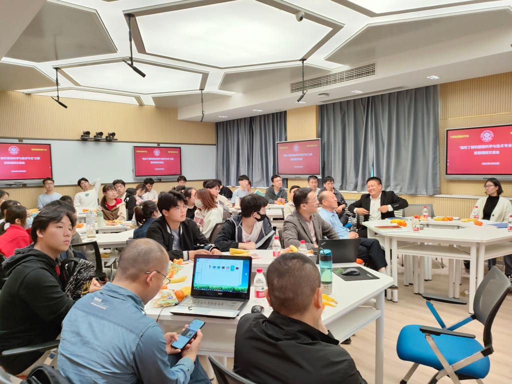 2021级本科生以小组为单位,以“我所了解的植物科学与技术专业”为主题,围绕国内外高校该专业开设情况、相关行业未来发展趋势和农学门类公务员岗位对植科专业的要求等三个方面以PPT的形式进行了阐述展示,这是根据前一阶段植科系倡议的“自主调研植物科学技术专业”进行的总结汇报。各汇报小组准备充分,体现出对考研、就业以及行业发展等方面进行了充分调研;会议气氛轻松活跃,与会人员热烈交流。