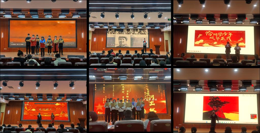 报告厅内歌声、掌声和喝彩声此起彼伏,一首首铭记初心的歌曲,一句句承诺使命的诗词,表达着对中国共产党丰功伟绩的万千敬意。此次红色教育主题活动在红色基因队的诗朗诵《满江红》中拉开序幕,情调激昂,慷慨壮烈。接着,同学们的诗朗诵《人民万岁》、《沁园春·雪》和《少年中国说》等,表达了对祖国和人民的无限热爱,深刻体现了青年学子们的责任与担当,也把此次活动推向了高潮,赢得了在场师生们的阵阵掌声。最后,高寒星一首《红星照我去战斗》结束了此次活动,她嘹亮的歌声淋漓尽致地展现了青年学子要“听党话、跟党走,坚持党的领导”的决心,鼓舞着当代青年大学生在伟大的社会主义建设中奉献自己的青春和力量。一首首红歌、一句句红诗都不断激励着一代代青年的成长,同学们在红色经典的诗歌中汲取革命力量,用满腔热情和热血去创造祖国美好未来!