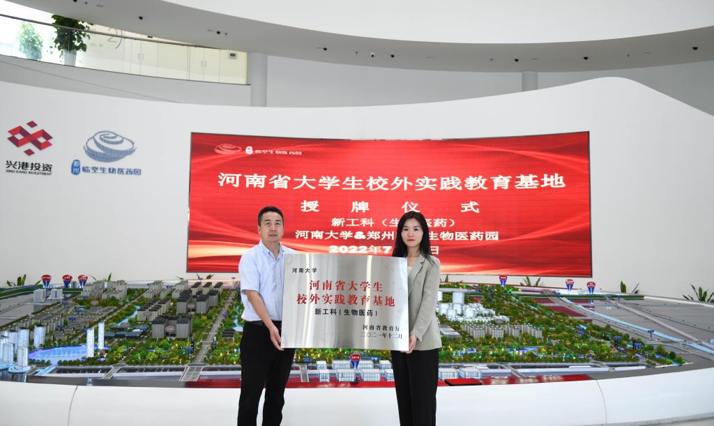 学院一行实地参观郑州临空生物医药产业园,现场为入驻企业推介参与交流的毕业生就业。吴建伟、马兵共同为河南大学/郑州临空生物医药产业园“河南省新工科(生物医药)大学生校外实践教育基地”揭牌。