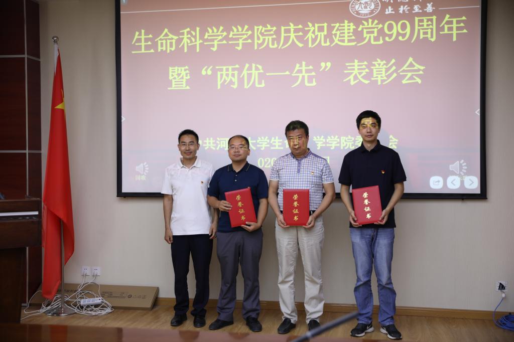 学院党委委员赵翔、王磊、张清德等为生物科学系党支部等3个先进党支部,艾鹏慧等21名优秀共产党员、马云峰等5名优秀党务工作者进行颁奖。