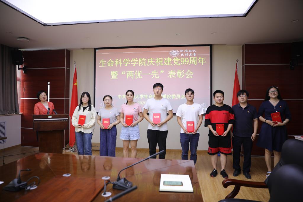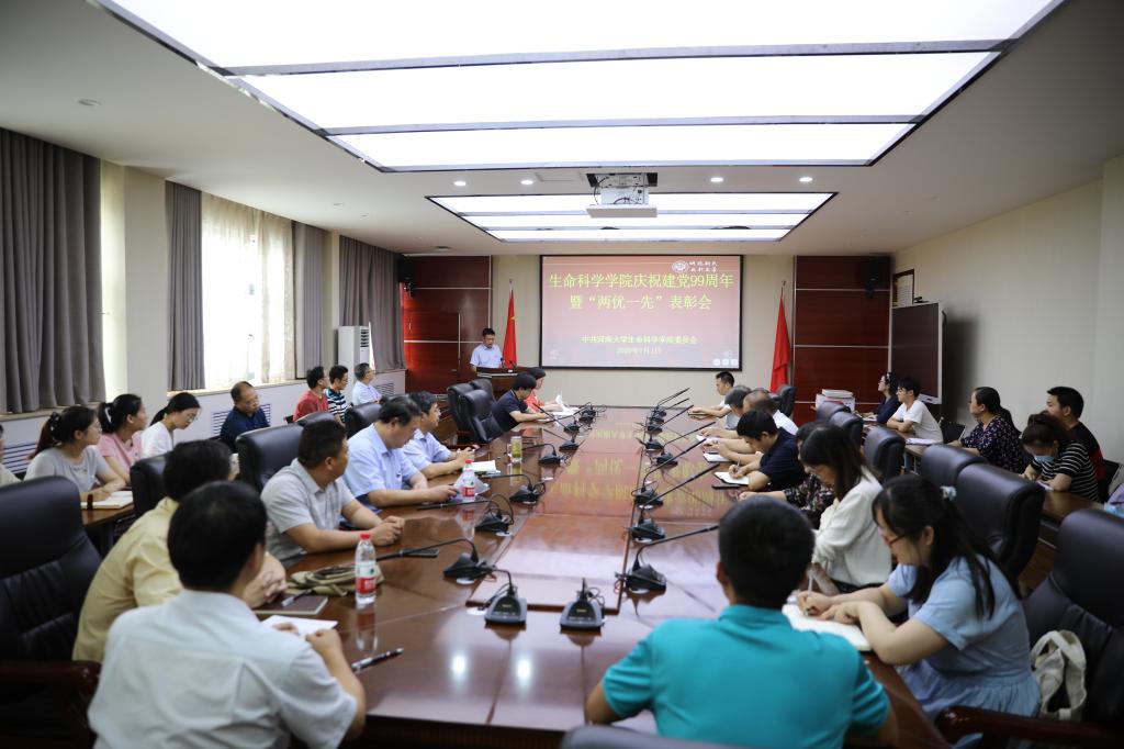 初心如磐,使命在肩。为庆祝党的生日,缅怀党的历史,充分发挥先进典型表率示范作用,激励基层党组织和广大党员奋发进取、创先争优,促进一流学科建设内涵式发展。7月1日下午,生命科学学院在学院B201会议室举行庆祝建党99周年暨“两优一先”表彰大会。学院领导班子、党委委员、教职工党员、学生党员代表参加大会。会议由生命科学学院党委副书记张亚歌主持。