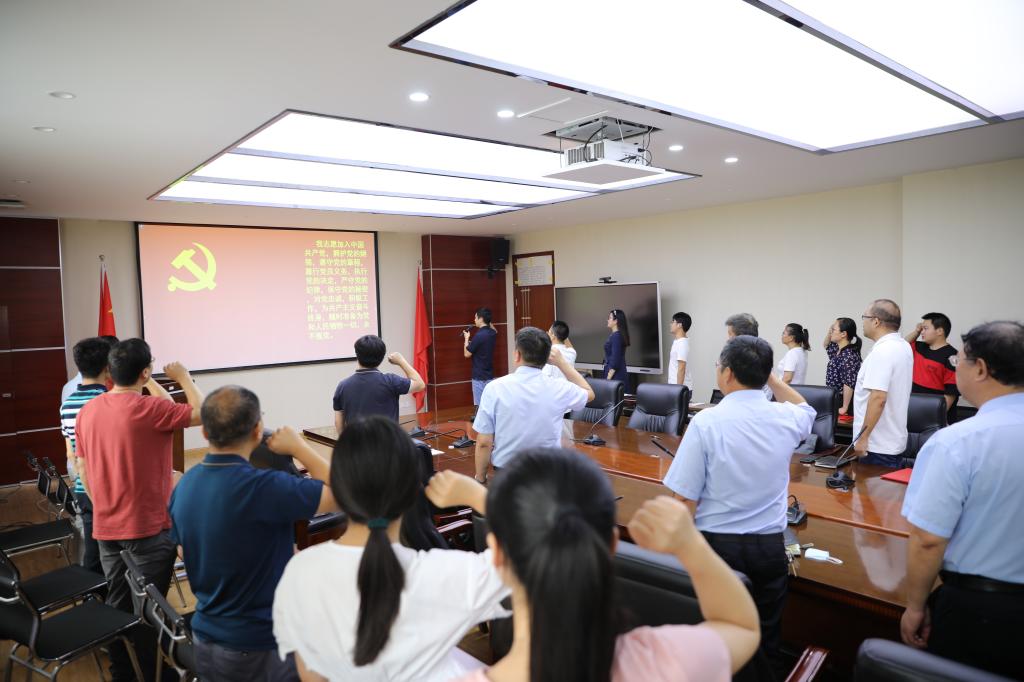 全体党员重温入党誓词。优秀党员代表、重点实验室教工党支部书记宋佳晟领誓,宣读誓词期间,每位党员都将誓词高声诵读,铿锵有力的誓词声代表着每一位党员对党的忠诚与信仰,握紧的拳头,将党员的责任牢记在心。