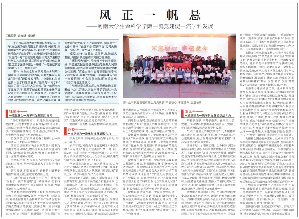 不驰于空想、不骛于虚声。在河南大学,党建工作和学科发展绝不是“两张皮”,党建工作已成动力源,强力助推学科发展。