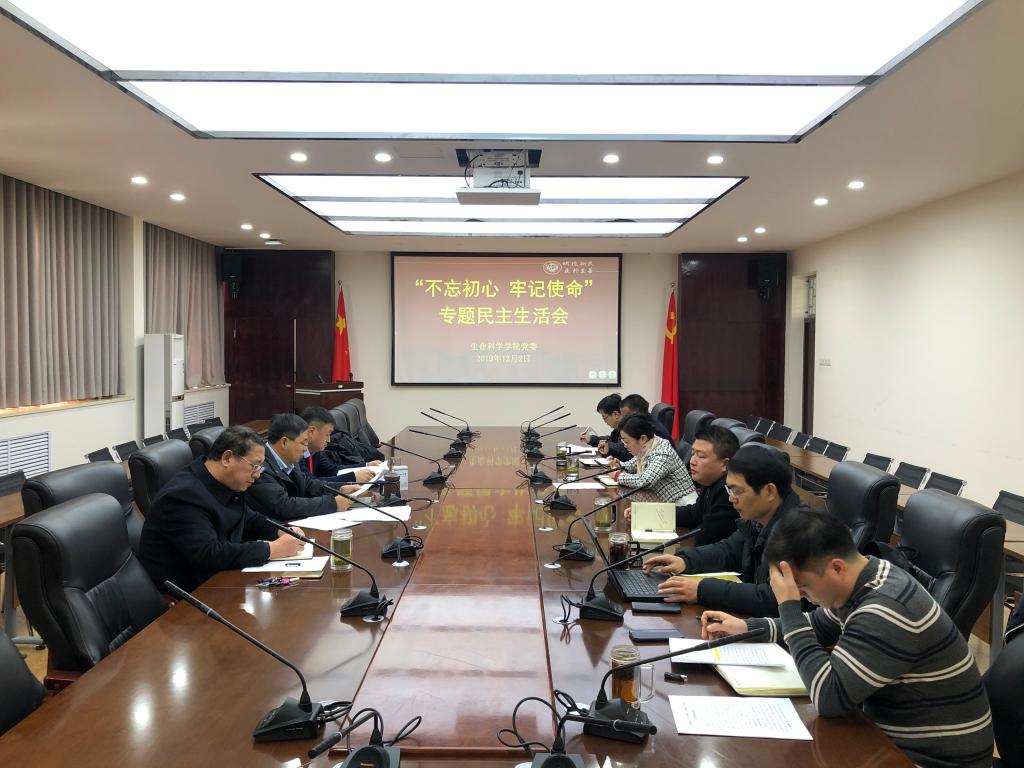 根据学校主题教育工作安排,12月2日上午,生命科学学院在学院B201会议室召开“不忘初心、牢记使命”专题民主生活会。生命科学学院、棉花生物学国家重点实验室以及植物逆境适应与改良国家重点实验室全体党员领导干部参加会议。会议由学院党委书记赵东保主持。