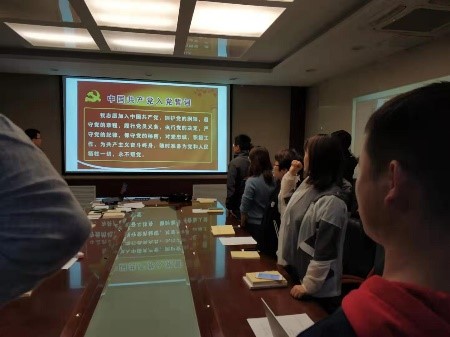 党支部为郭思义等四位同志过党员政治生日,全体党员重温入党誓词。