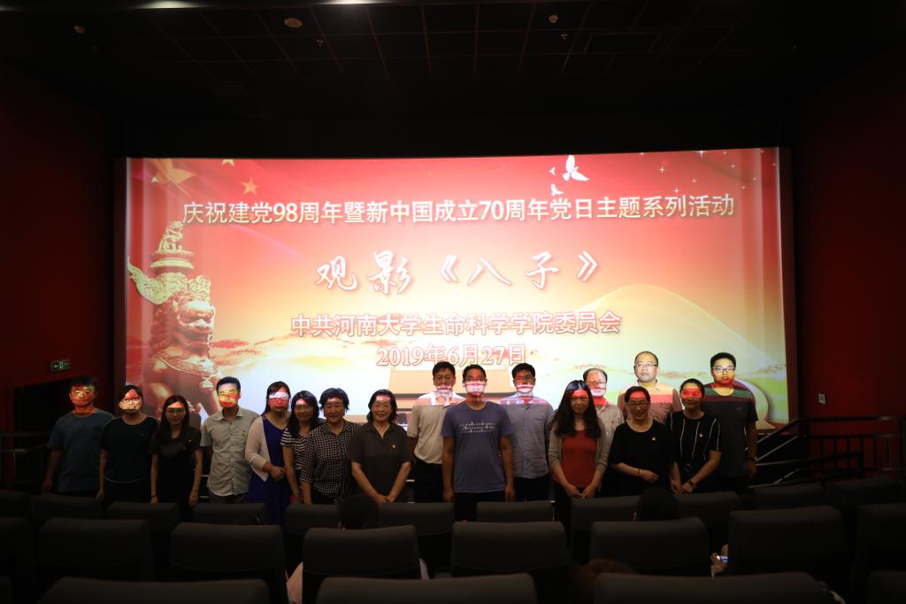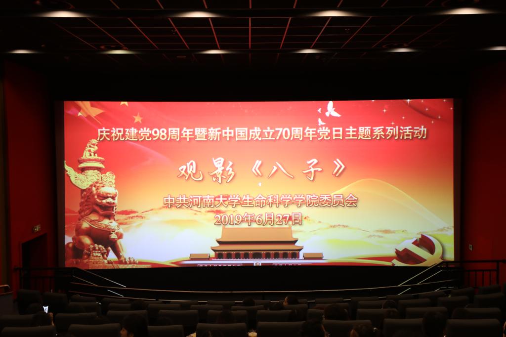 为庆祝建党98周年暨新中国成立70周年,根据党的十九大部署,按照学校安排,生命科学学院党委深入学习贯彻落实“不忘初心、牢记使命”主题教育。6月27日下午,在星光天地影厅开展“不忘初心、牢记使命,永志不忘红色血脉”观影活动。学院教工及学生党支部108名党员共同观看了刚刚在人民大会堂小礼堂首映的以抗战时期为题材的红色电影《八子》。