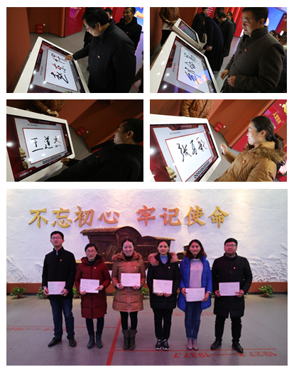 参观完展厅后,大家来到宣誓厅,学院正处级组织员郑合勋老师带领全体党员庄严宣誓,新生党员入党宣誓、老党员重温入党誓词。面向鲜红的党旗,高举右拳,字字铿锵有力,句句掷地有声,凸显共产党员的忠诚与信仰。