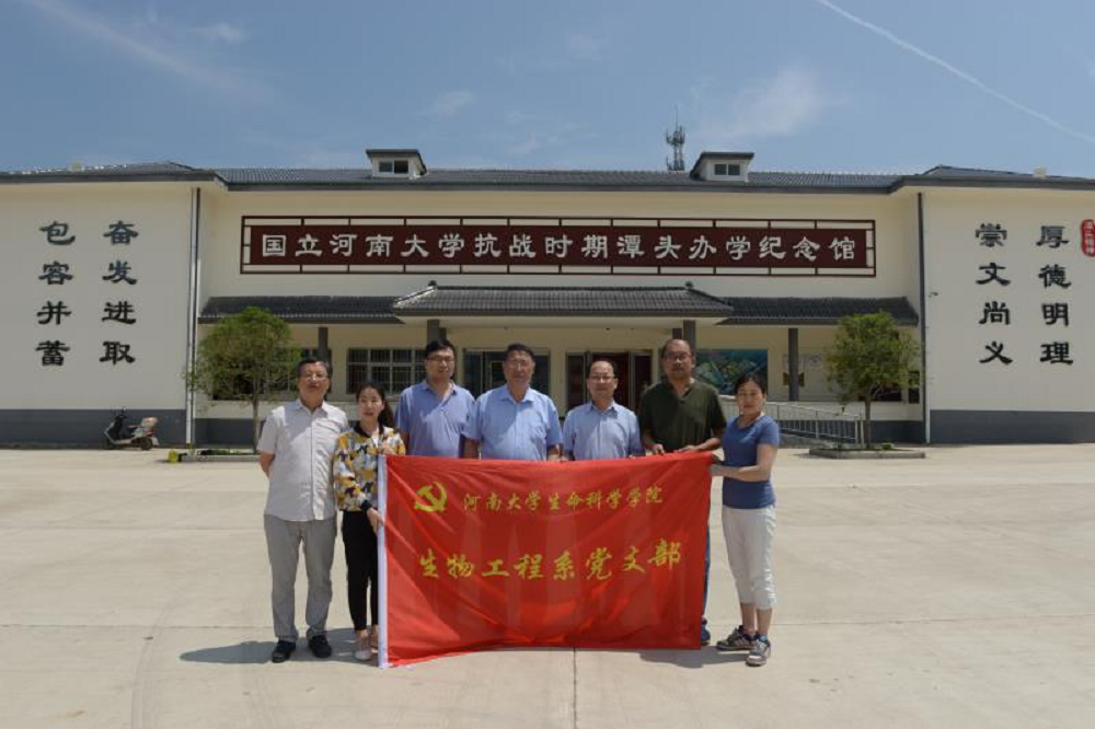 6月23日,生物工程系党支部组织党员前往洛阳市潭头镇国立河南大学抗战时期办学纪念馆开展“不忘初心,秉承前贤,建好一流学科”主题党日活动。在潭头五年间,河南大学虽然办学条件艰苦,却以上课总时数全国第二、综合评价全国第六的业绩,擢升为国立大学,铸就了河南大学办学史上的一座不朽丰碑。通过参观学习,党员们从河南大学办学史的艰辛中获取信念的力量,不忘初心,秉承前贤光辉风范,大力弘扬优良传统,把一流学科建设好。参观结束后,党支部成员在党建广场重温入党誓词,合影留念。