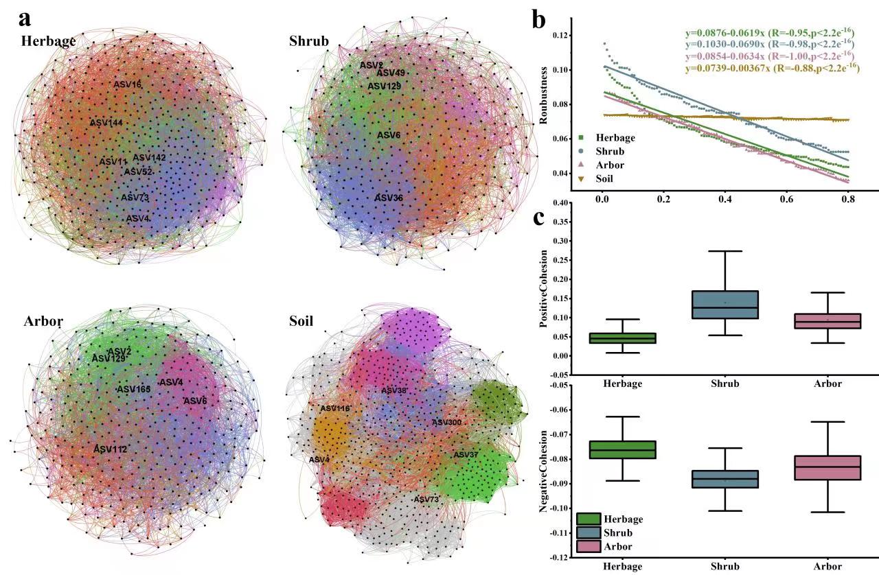 2023年3月20日,Frontiers in Microbiology(中科院二区TOP,IF=6.064)在线发表了生命科学学院关于校园植物网构建方面的最新研究进展,题为“Rhizosphere microbial community assembly and association networks strongly differ based on vegetation type at a local environment scale”,解析了不同植被类型下根际微生物的群落组成、构建过程及共现网络。