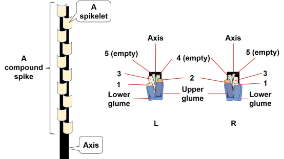 图3. 节节麦的复穗状花序、小穗及其种子示意图