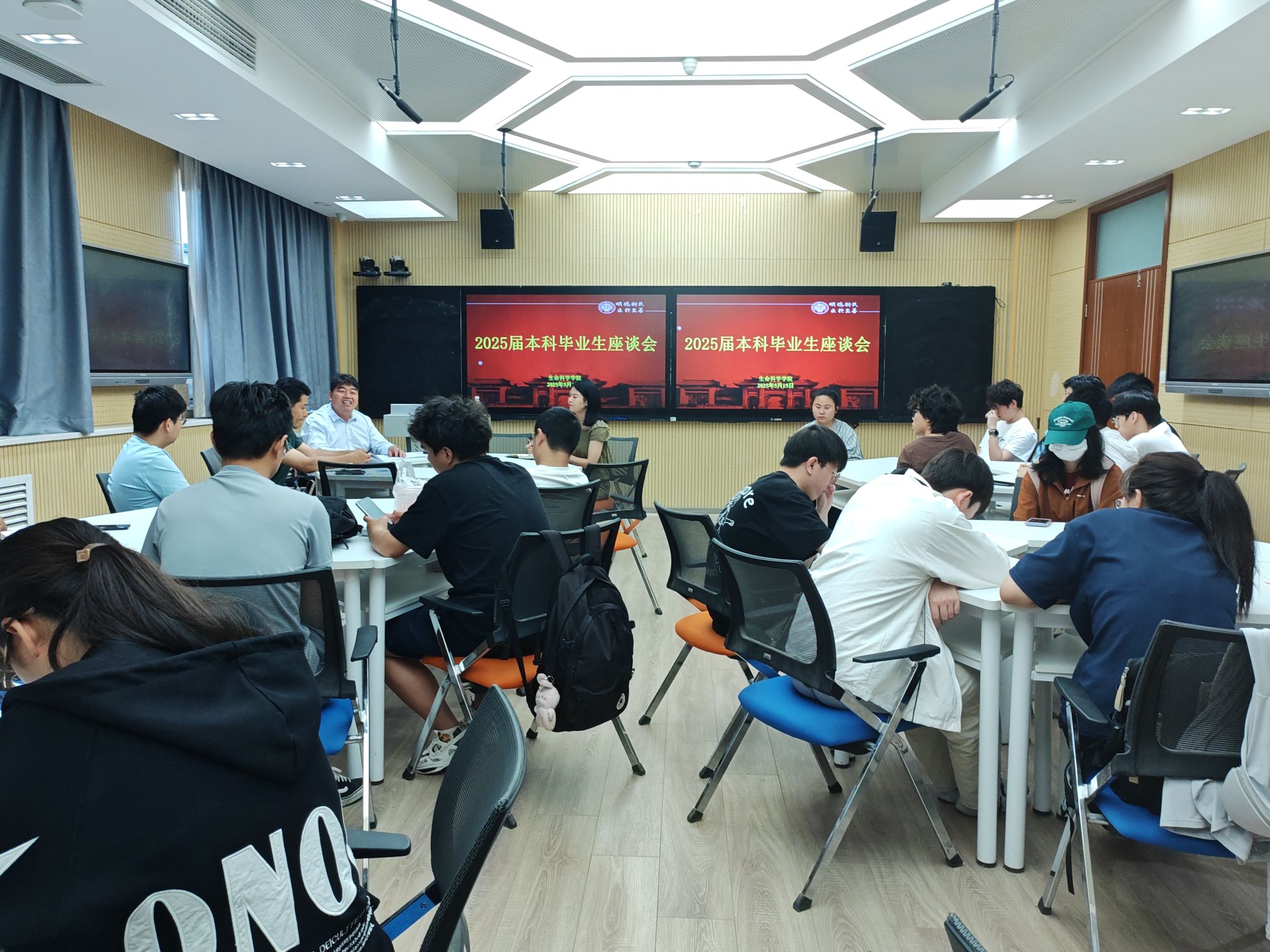宋永鹏介绍了目前的就业形势,以及国家、学校及学院为毕业生就业提供的各项优惠政策和实现路径。他勉励大家既要做追光者,更要努力成为发光体,毕业生要主动投身实践锻炼、知行合一,在真实职场中检验知识、提升能力。本次座谈会是就业教育的重要环节,学院将持续开展学科专场招聘,常态推进访企拓岗,为毕业生提供更多优质岗位。