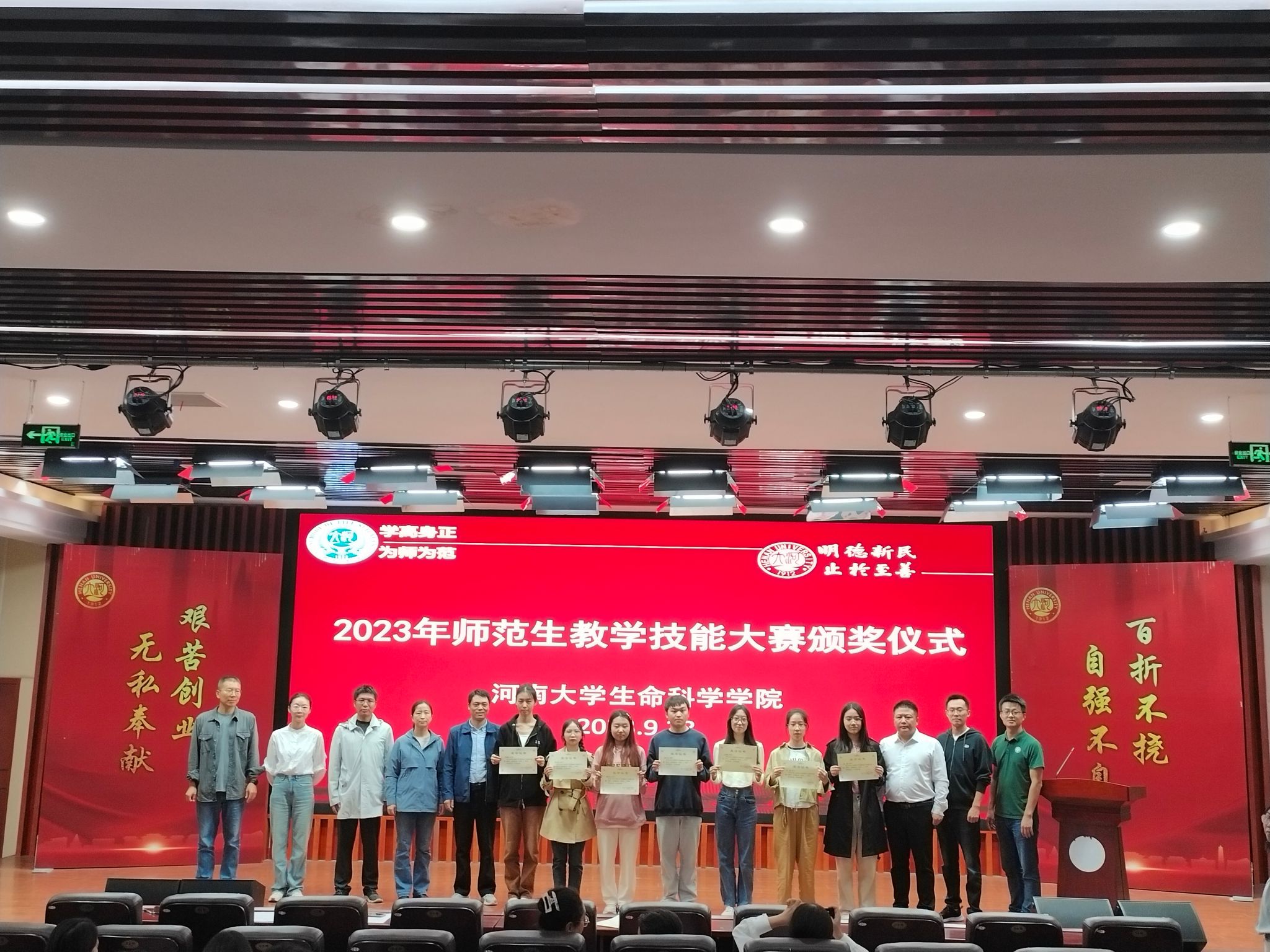 在圆形报告厅,2020级生物科学师范生教育实习动员会开始之前,举行了2023年生命科学学院师范生教学技能大赛颁奖仪式。副院长赵海鹏,教务办主任张要军,实习高中指导教师吴中(河南大学附属中学),史静娟(开封市高级中学)、郭俊杰(开封市第二十五中学)、赫丹丹(开封市田家炳实验中学)和王鹏坤(开封市第七中学)等为同学们颁奖。仪式由生物科学系系主任刘凌云主持,厉燕、朱炳坤和李雅倩等10位同学分获一、二、三等奖。