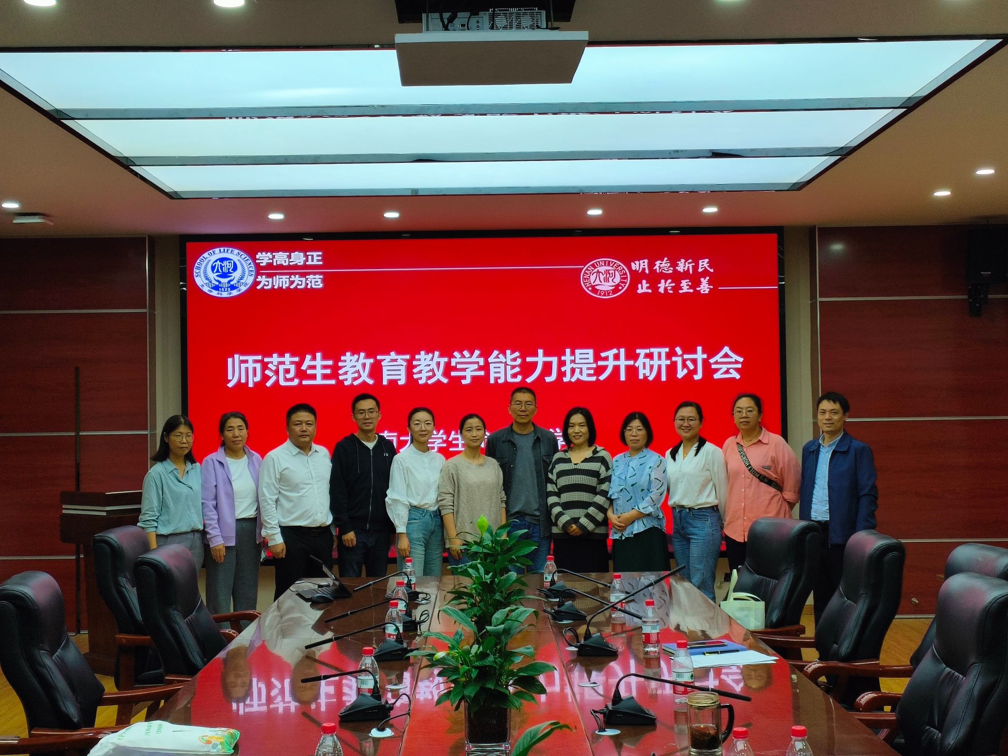 动员会结束后,与会教师移至B201会议室开展座谈,就师范生教育教学能力提升展开研讨。副院长李志芳应邀参加,教务办主任张要军主持研讨会。赵海鹏介绍了生命科学学院近年来发展情况尤其师范专业建设情况,李志芳介绍了学院学科教学专硕招生及培养现状,刘凌云对生物科学(师范)专业人才培养方案进行了介绍;双方就师范生教育教学能力、实践教学过程中遇到的问题进行了针对性的交流研讨,还就教改项目申报,课程教学相关书籍出版、论文撰写,校本课程开发等事宜交换了意见。双方一致认为应该秉承新时代育人理念,围绕师范生培养质量提升进行持续实践探讨,并在此过程中不断加强校地合作、基地共建和共同开展教学研究等工作力度。