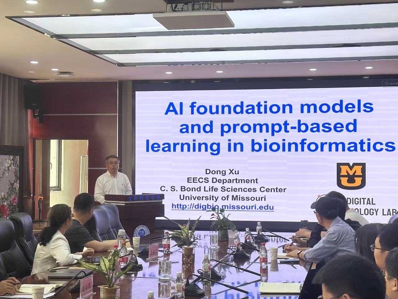 4月29日上午,美国密苏里大学许东教授在生命科学学院B201会议室做了题为“AIfoundation models and prompt-based learning in bioinformatics”的学术报告。许教授提出人工智能范式正在从特征工程、架构工程、目标工程,向提示工程转变,并通过结合其AI模型在蛋白质结构与功能解析、单细胞组学等生物信息领域的交叉研究,生动描绘了一幅生物信息学与AI深度融合的蓝图。