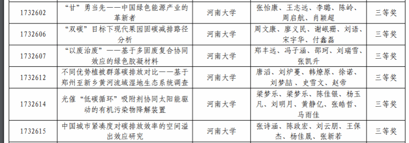 本届大赛以“节能减排 绿色能源”为主题,旨在激发大学生的创新思维和实践能力,推动节能减排技术的研发与应用,为实现国家“双碳”目标贡献力量。竞赛吸引了国内外共642所高校报名参加,参赛高校、作品申报数量、参赛人数均创历史新高。生命科学学院积极响应国家号召,组织师生团队深入探索节能减排领域的前沿问题,最终王冬老师指导的项目“‘双碳’目标下现代果园固碳减排路径研究”和苗原老师指导的项目“不同优势植被群落碳排放对比——基于郑州至新乡黄河流域湿地生态系统调查”荣获国家三等奖,充分展现了同学们扎实的专业知识、严谨的研究态度和创新的思维方式。