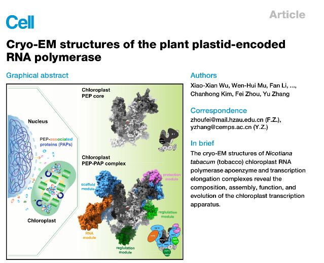 近日,生命科学学院2023届生物学“菁英计划”硕士研究生穆文慧与中国科学院分子植物科学卓越创新中心武霄仙副研究员以共同第一作者在顶级期刊《Cell》上以“Cryo-EM structures of the plant plastid-encoded RNA polymerase”为题发表了封面研究论文,实现了我校在学生培养期间发表顶级期刊的新突破。