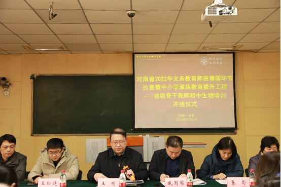 2月26上午9点,河南大学“河南省2022年义务教育师资薄弱环节改善暨中小学教师素质提升工程”省级骨干教师培育项目初中生物培训班在生科院B101教室正式开班。生命科学学院党委副书记、执行院长王刚教授,副院长臧国轻,院办公室主任王松廷,院成教办主任李黎,生物科学系副主任肖保林,项目课程负责人张彤,班主任张先莽,王茹等项目组成员和50名来自全省各地的初中生物教师学员参加了开班仪式,仪式由学院副院长臧国轻主持。