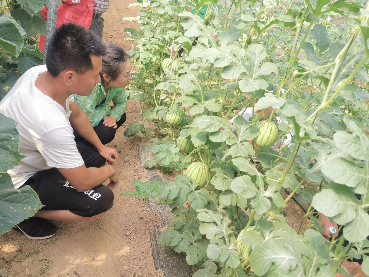 冒着烈日,专家团队先后抵达开封市祥符区兴隆乡和袁坊乡,分别对新型农业经营主体带头人培训班学员王彦杰和张亚洲进行走访、开展跟踪服务。在王彦杰的菊花生产基地,专家团队仔细询问了王彦杰求学创业过程,创业中遇到的困难困惑。王彦杰主动提出其基地可以为开云kaiyun网页版官网提供相关专业学生实习实践、劳动教育场所,受到了专家团队的肯定和赞赏;在袁坊乡张吴寨村张亚洲的温室大棚里,专家团队进行了考察了解,期间李国申教授、董薇副教授就西瓜的种植技术问题进行现场指导,专家团队就张亚洲有关进一步壮大生产规模、注册产品商标等问题的相关诉求给予了现场回应,所提建议和方案受到了张亚洲本人和周边群众的认可赞赏。