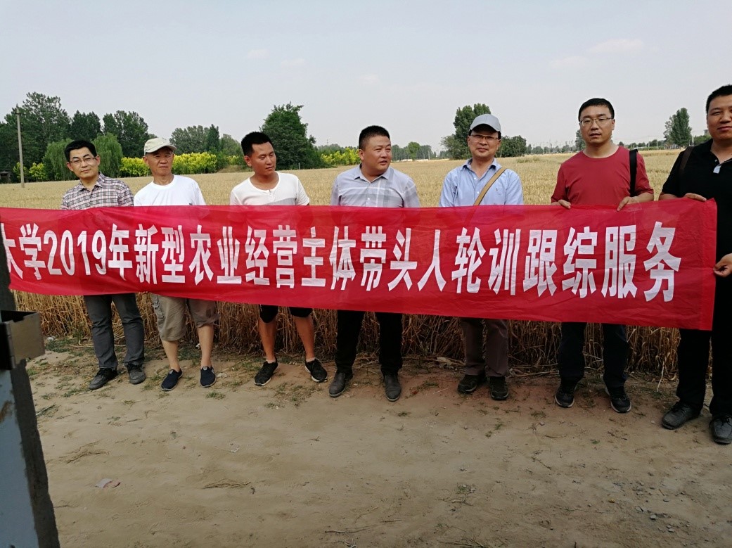 5月30日正值全国科技工作者日,按照省农村农业厅整体工作要求,河南大学2019年新型农业经营主体带头人轮训跟踪服务活动由生命科学学院组织进行。为更好的为农民学员搭建平台、排忧解难,生命科学学院组织了跟踪服务专家团队,对往期学员进行走访并对他们在农业生产、经营中遇到的难题进行现场分析研讨。专家团队包括省“水产种质资源保护与利用规划工作组”成员、生命科学学院副院长赵海鹏博士、成人教育办公室李黎主任、河南大学生物工程实验室主任杨生玉教授、植物科学与技术系系主任高安礼博士、实验教学中心主任、植物生产课程组组长李世朋博士、著名农业育种专家李国申教授、董薇博士;新型职业农民培育国家师资库成员、“农民讲师”、我院2019年新型农业经营主体带头人外聘班主任、祥符区税务局第一分局王建凯副局长。