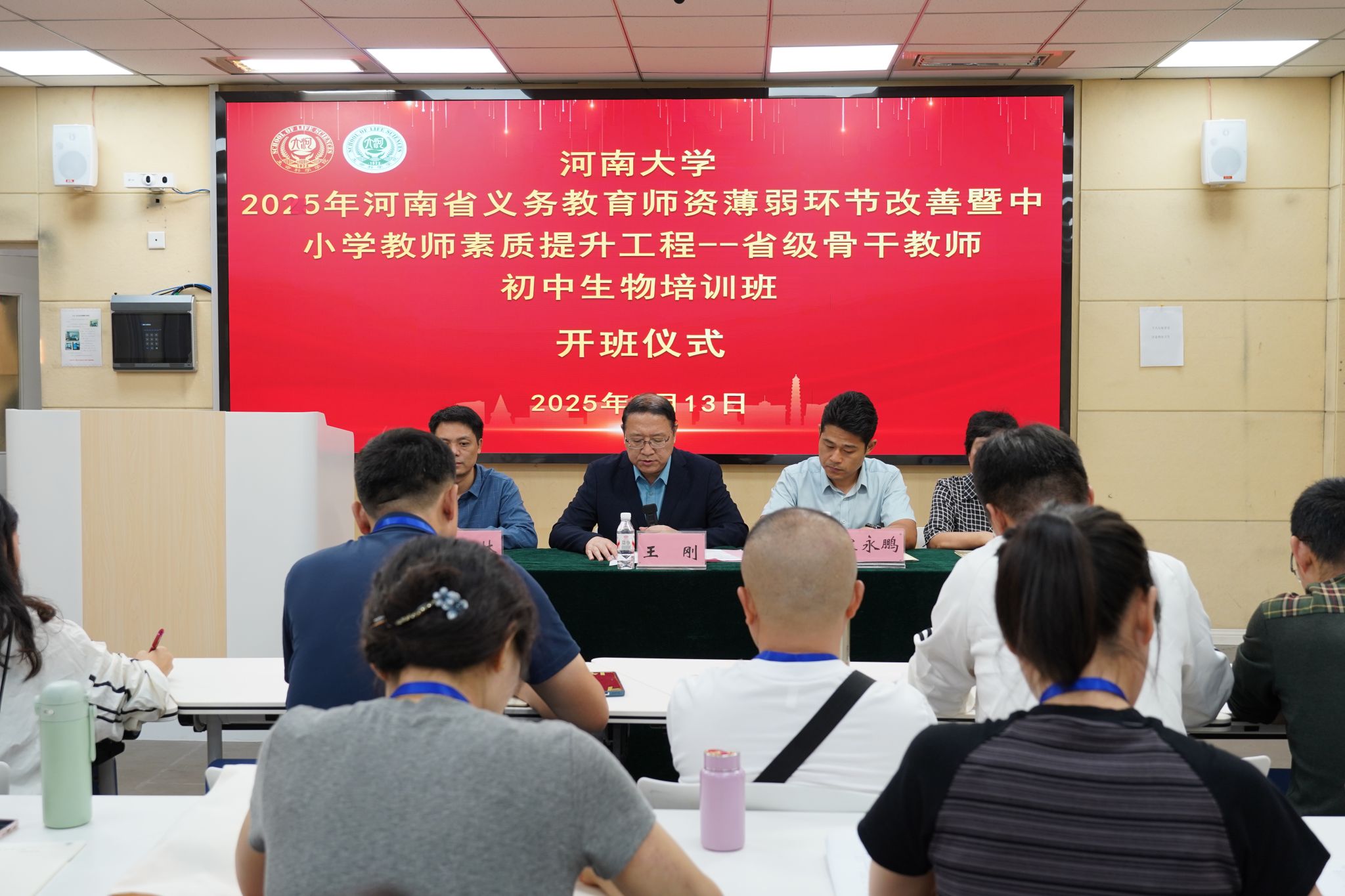 9月13日上午,河南大学“河南省2025年义务教育师资薄弱环节改善暨中小学教师素质提升工程——省级骨干教师初中生物培训班”在生命科学学院B101教室正式开班。执行院长王刚,学院党委副书记宋永鹏,成教办负责人李黎,生物科学系副主任肖保林,班主任陈小迪等项目组成员以及53名来自全省各地的初中生物教师参加了开班仪式。仪式由宋永鹏主持。