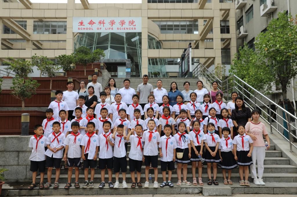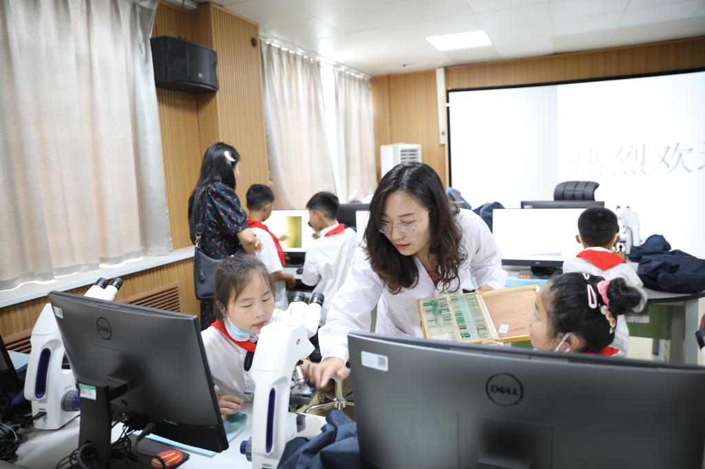 张鹏程师生一行首先到达明伦校区,依次参观了铁塔、大礼堂、7号楼、6号楼等;后又到达金明校区,先后参观了图书馆、生命科学学院标本馆、啤酒酿造车间、生物学基础实验教学中心等。张鹏程一行来到生命科学学院后,学院教师们在大学里现场为二郎庙小学的孩子们上了一堂生动的科学实践课。在生命科学学院标本馆,学院工会副主席柴连琴教授为二郎庙小学的师生们普及了动物和植物的专业知识;在啤酒酿造车间,李华老师为二郎庙的师生们讲解了啤酒酿造过程和发酵工艺;在生物学基础实验教学中心,董薇老师带领同学们透过显微镜观察了玉米根尖切片,为孩子们带来了一场视觉盛宴。随后,二郎庙小学师生们来到生命科学学院楼下一一与生科院合影留念。通过“我在大学上堂课”和“我与生科合个影”活动等活动,让孩子们看到科学、了解科学、爱上科学,厚植爱国情怀,树立报国志向。