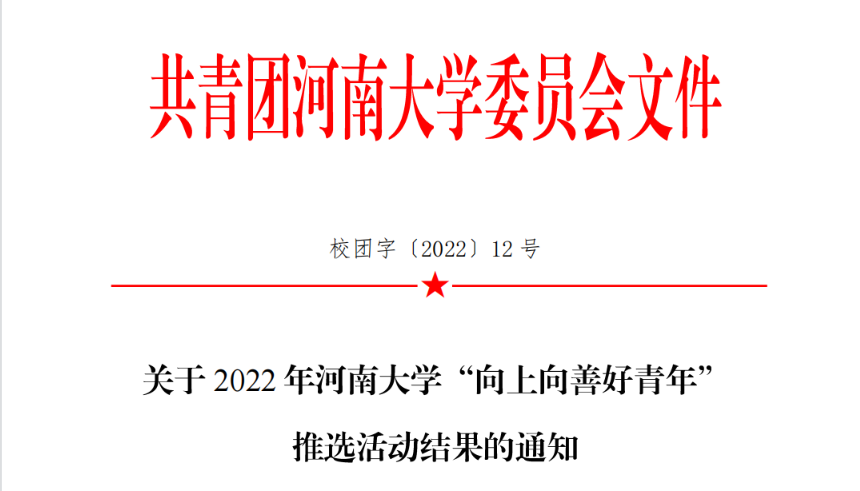 为深入学习宣传贯彻习近平总书记关于青年工作的重要思想,大力推进青年思想道德建设,积极培育和践行社会主义核心价值观,校团委在全校广大团员青年中深入组织开展了2022年河南大学“向上向善好青年”推选活动。生命科学学院有四名同学被推选为河南大学“向上向善好青年”。