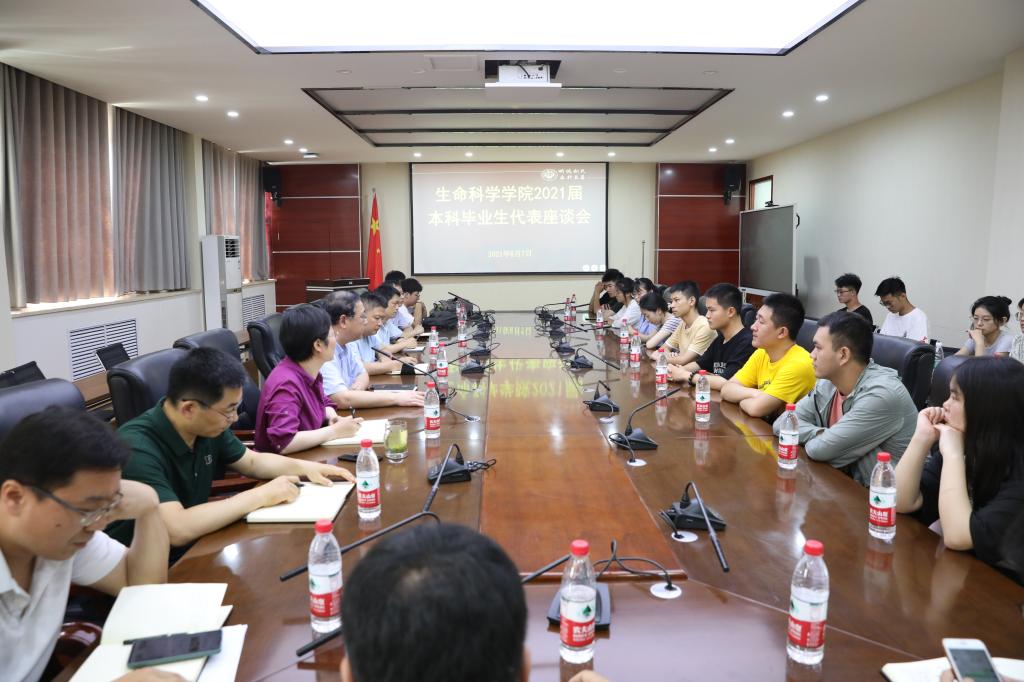 6月7日上午,生命科学学院2021届本科毕业生代表座谈会在学院B201会议室召开。学院执行院长、党委副书记王刚、学院党委副书记张亚歌、副院长赵海鹏及各系、实验教学中心主任与毕业生代表座谈交流,共叙师生情谊、共畅美好未来。座谈会由张亚歌主持。