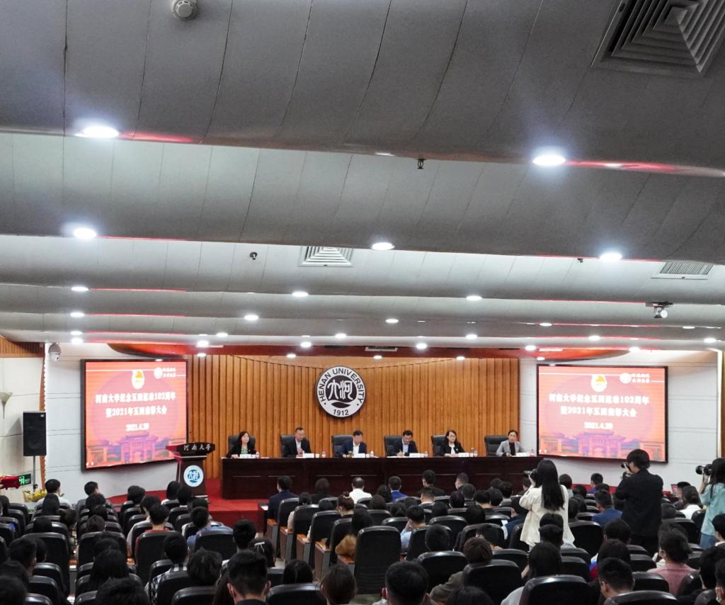 4月29日下午,河南大学纪念五四运动102周年暨2021年五四表彰大会在金明校区行政楼二楼报告厅隆重举行。校党委副书记张宝明出席会议并讲话,校党委组织部、学生工作部、研究生工作部、校团委负责人,以及部分学院党委副书记、团委书记、青年教师和学生代表参加表彰大会。会上,校团委书记沙莎宣读了2020年度河南省两红两优评选结果,生命科学学院团委荣获“河南省五四红旗团委”。