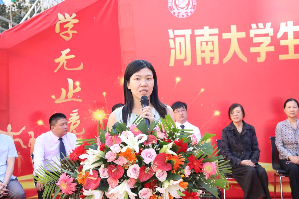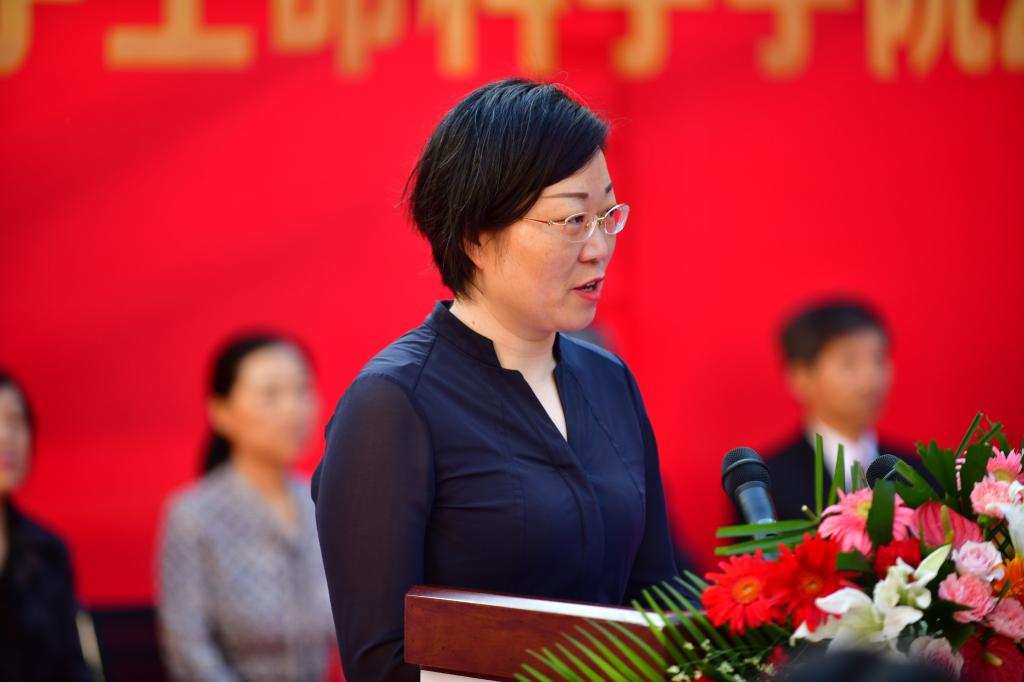 教师代表徐小冬教授发言,她希望2020级新同学珍惜来之不易的学习机会,将自己每一个阶段最好的状态表现出来,要学会做选择:选择做学问,选择正直,选择做更好的自己。