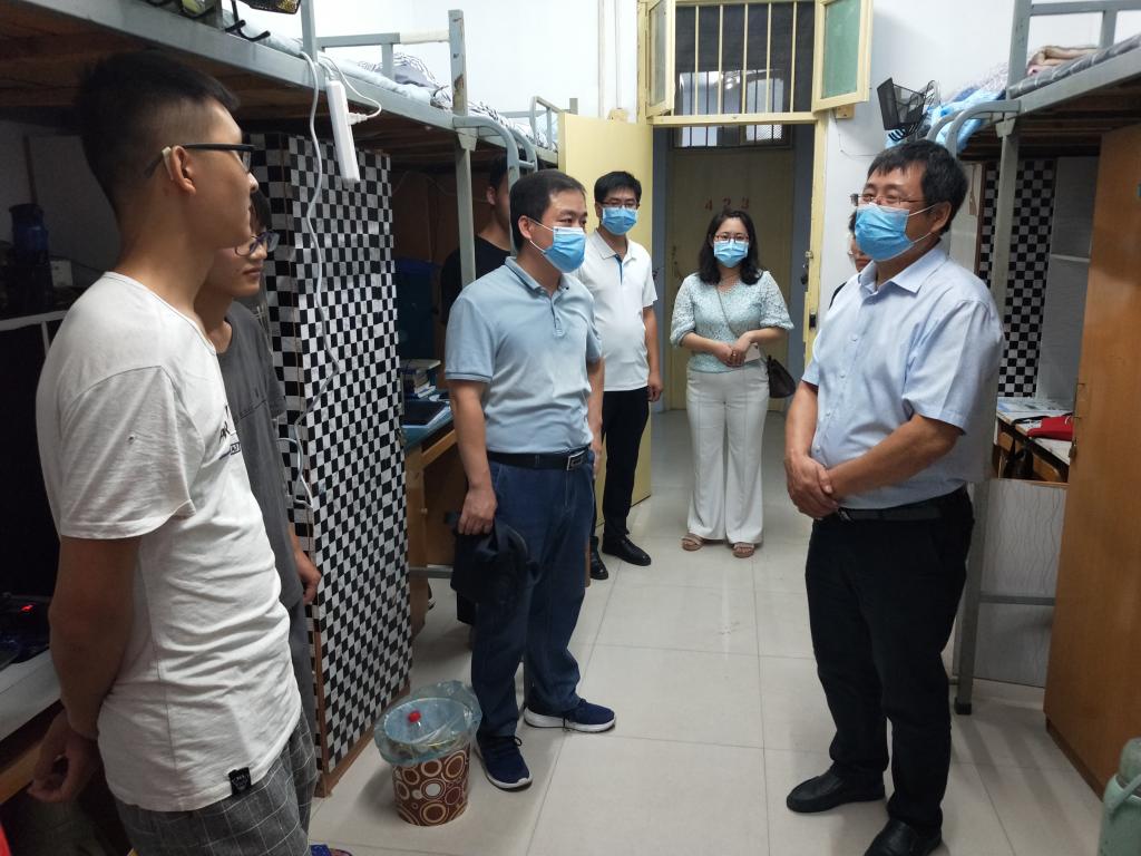 为进一步了解2020级本科新生的住宿情况,帮助新生尽快适应新的生活环境,9月12日晚7点,生命科学学院党委书记赵东保,常务副院长、党委副书记王刚,党委副书记张亚歌,副院长臧国轻,副院长赵海鹏及各年级辅导员老师前往东苑学生公寓看望刚刚入学的2020级新同学。