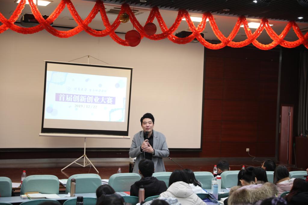 为培养学生的创新创业意识,持续激发大学生创新创业热情,提高我院学生的创新创业能力,推进学院创新创业工作,同时选拔优秀团队,备战2020年“创青春”大学生创新创业大赛,12月22日上午,生命科学学院在圆形报告厅三楼举办首届创新创业大赛。生命科学学院党委副书记张亚歌出席比赛,河南大学经济学院副教授、“创青春”大学生创新创业大赛省赛评委管利,河南大学经济学院信恒占博士,河南寻美视觉文化传播有限公司副总经理郭泽瀚担任本次大赛的评委。