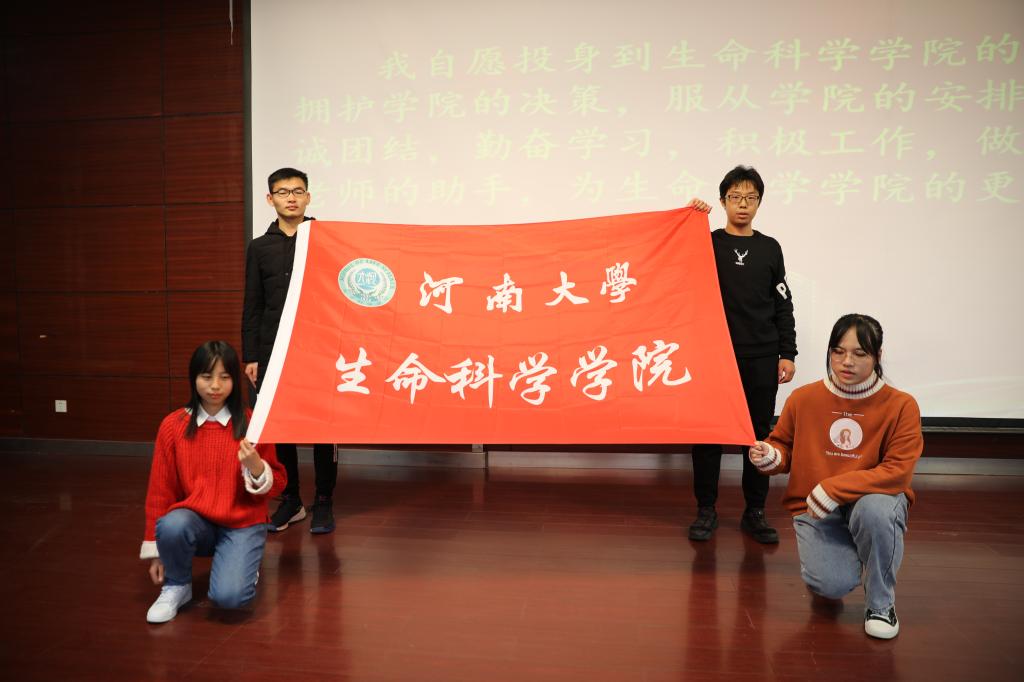 大会在雄壮激昂的国歌声中拉开帷幕。全体学生干部右拳紧握,眼神坚定,声音洪亮,面向院旗庄严宣誓:“努力学习,积极工作,做好老师的助手,同学的表率,为生命科学学院的更加辉煌而努力奋斗”。