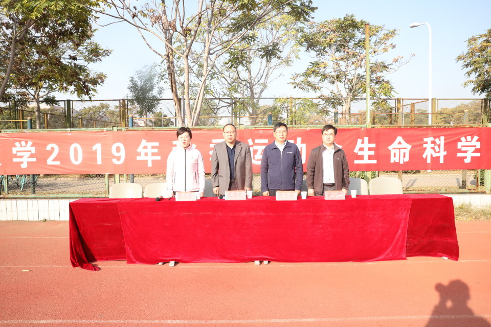 为倡导全民运动,丰富师生课余生活,提高师生的身体素质和健身意识,10月27日,生命科学学院在金明校区南田径场举办2019年秋季运动会。河南大学党委宣传部部长、新闻中心主任、校体委副主任王明钦,生命科学学院党委书记赵东保,党委副书记张亚歌,副院长赵翔,全体参赛教职工及全体本科生出席运动会开幕式。开幕式由张亚歌主持。