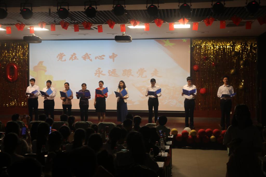 晚会在慷慨激昂的朗诵《回首七十年,奋进新旋律》中拉开帷幕。张亚歌、宋佳晟带领党支部书记、辅导员老师带来的朗诵《党在我心中》,铿锵有力的声音、饱含深情的文字深深地震撼着现场的每一位观众,表达了生科教师“党在我心中,永远跟党走”的坚定信念;英雄的事迹,历史不会忘记,英雄的精神,激励我们前行,2017级本科生刘素娟同学朗诵的《狼牙山五壮士》,激情高昂,声情并茂,仿佛回到了那硝烟弥漫的岁月;晚会在学院领导、老师和明德班同学合唱《我和我的祖国》中落下帷幕。