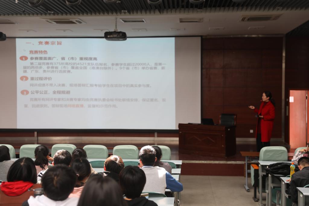 党委副书记张亚歌做动员讲话,她以PPT的形式从竞赛宗旨、竞赛要求、竞赛安排、竞赛奖励四个方面对大赛进行了详细的讲解,鼓励同学们充分利用学院提供的优质资源,多参加此类竞赛活动,更好的培养自己的创新意识、团队精神和实践能力,拓宽科学视野,争做一流生科学子。