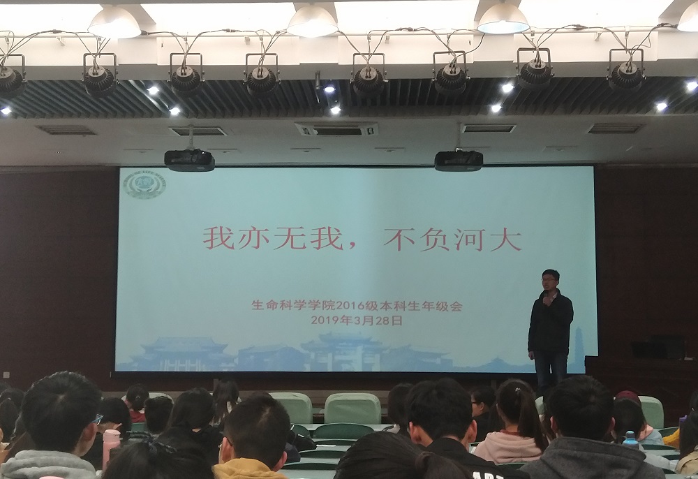 为落实学院相关工作要求,进一步加强学生工作,3月28日中午,2016级本科生在圆形报告厅三楼召开“我亦无我,不负河大主题年级会。