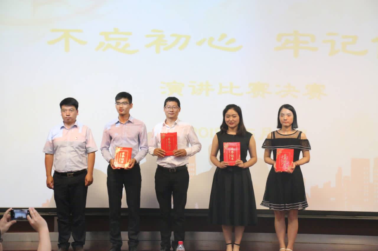 赵东保书记为此次比赛致辞。赵书记谈到,举行本次主题宣教活动的目的是为了落实党的十九大精神,充分展现我院教职工生积极投身于一流学科建设的氛围以及潜心教学科研的精神风貌。此外,本次活动对于优化学风、校风,促进学院的双一流建设都有重要意义。赵书记希望通过本次活动,引导全体教职工生做社会主义核心价值观坚定的信仰者,积极的传播者和模范的践行者。随后,第五届主题宣教活动演讲比赛决赛正式开始。在前期预赛选拔中,学生党支部和教职工党支部分别有6名选手进入决赛。选手们用波澜起伏的感情,张驰有力的节奏,结合具体感人的事例,表达自己对于“不忘初心、牢记使命”这一主题的理解,各有其味,别具风格。主题宣教系列活动之配音比赛中的优秀作品《那年那兔那些事》、主题宣教系列活动之舞台剧比赛优秀作品《不忘初心,牢记使命》也在本次演讲比赛决赛的舞台上进行了展示。深入人心的题材,恰到好处的感情基调给观众带来一场视听盛宴,赢得台下阵阵掌声。校党委宣传部副部长、新闻中心主任刘波老师对本次比赛做点评。她对演讲比赛选手们的选题和表现给予肯定,提醒我们要铭记每一位为了学校建设和发展辛勤付出的老师和同学,启发广大师生牢记自己的初心和使命。随后,主持人公布比赛结果,教工组行政党支部王丰等四位老师和学生组张燕芳荣获演讲比赛一等奖,其他师生分别荣获二等奖、三等奖。最后,本次活动在合唱表演《不忘初心》中落下帷幕。