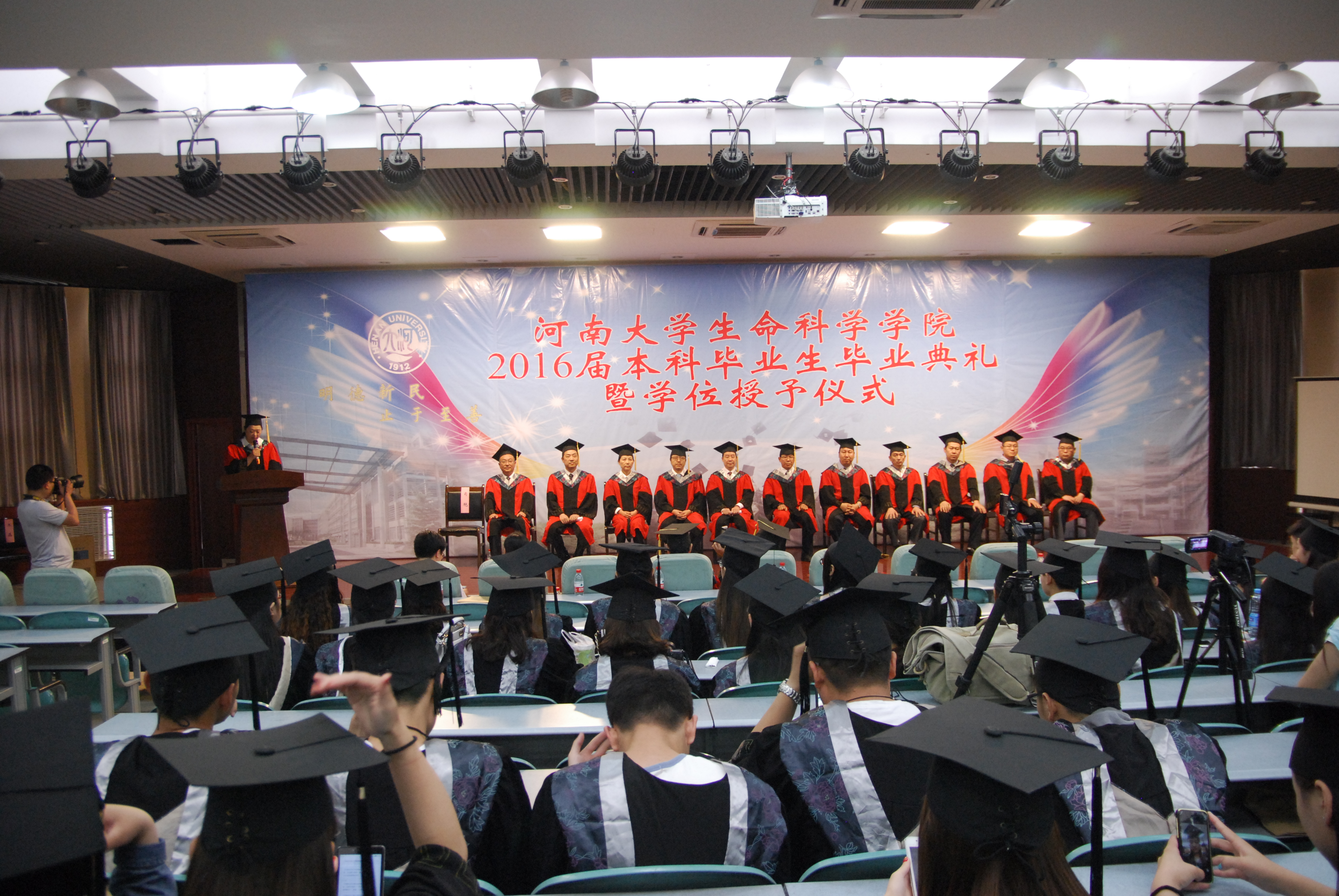 伴随着悠扬的河南大学校歌,毕业典礼暨学位授予仪式缓缓落下了帷幕。歌已毕,情还在。2016届毕业生们定会带着老师与同学们的美好祝愿,书写属于自己的新篇章。
