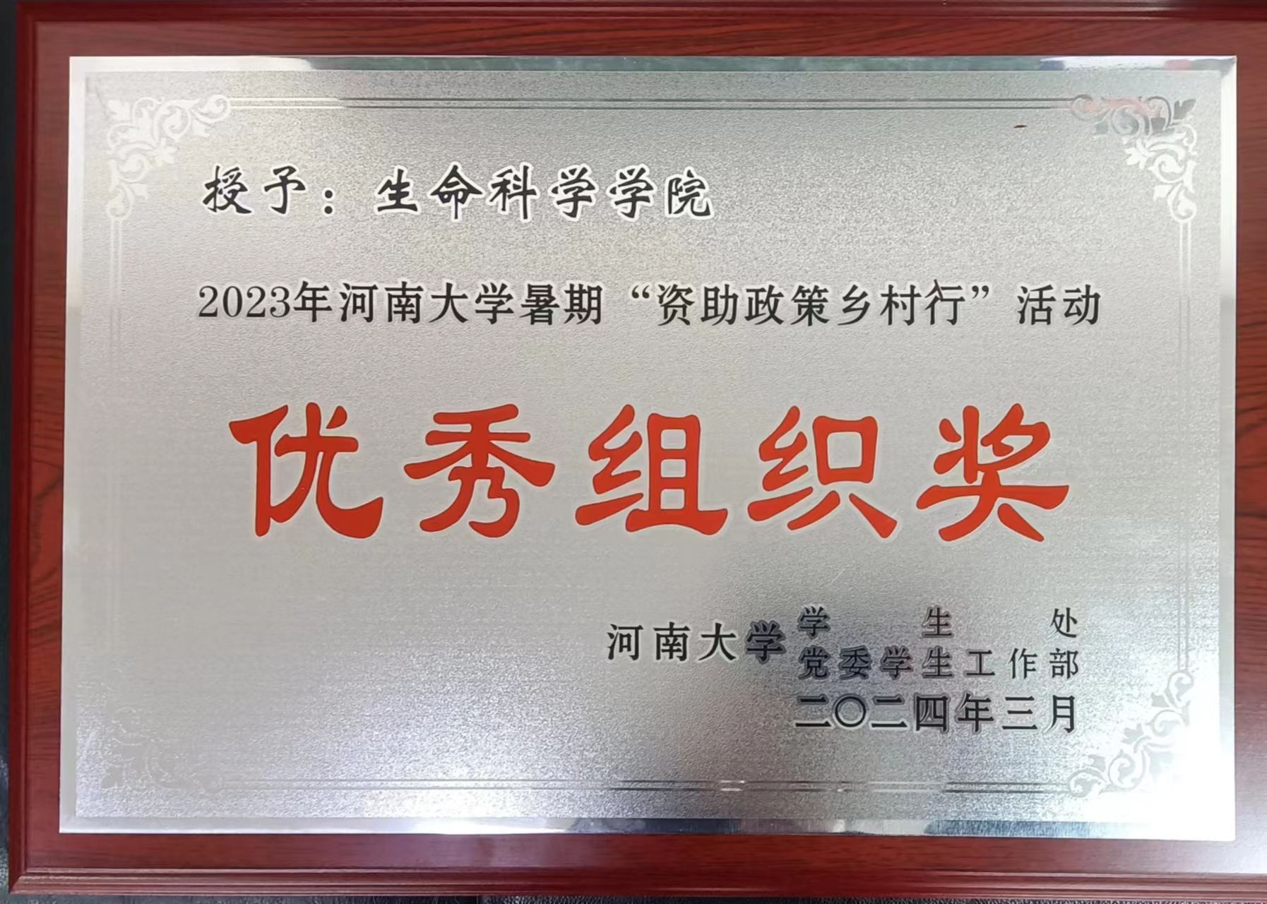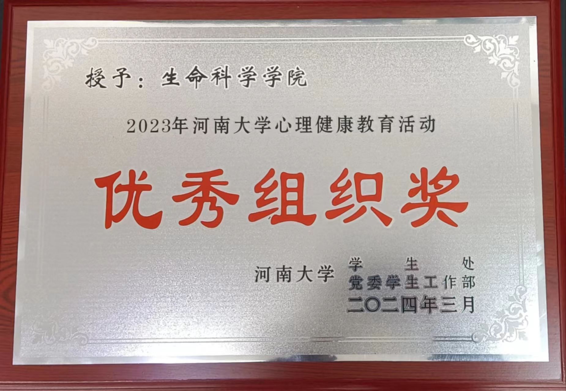 学院荣获河南大学2023年度辅导员素质能力大赛优秀组织奖、心理健康教育活动优秀组织奖、“资助政策乡村行”活动优秀组织奖和第二届“阅中华·悦河大”短视频征集大赛优秀组织奖;2022级生物科学专业黄小婷在全国“助学圆梦,青春启航”主题征稿活动中获银奖。一直以来,学院坚持立德树人根本任务,以服务学生成长、关注学生发展为中心,强化“三全育人”,推进“五育并举”,增强育人实效,注重学习与素质双提升、教学与科研双融合,进一步完善拔尖创新人才培养体系,形成了具有生物特色的时代新人培养模式。