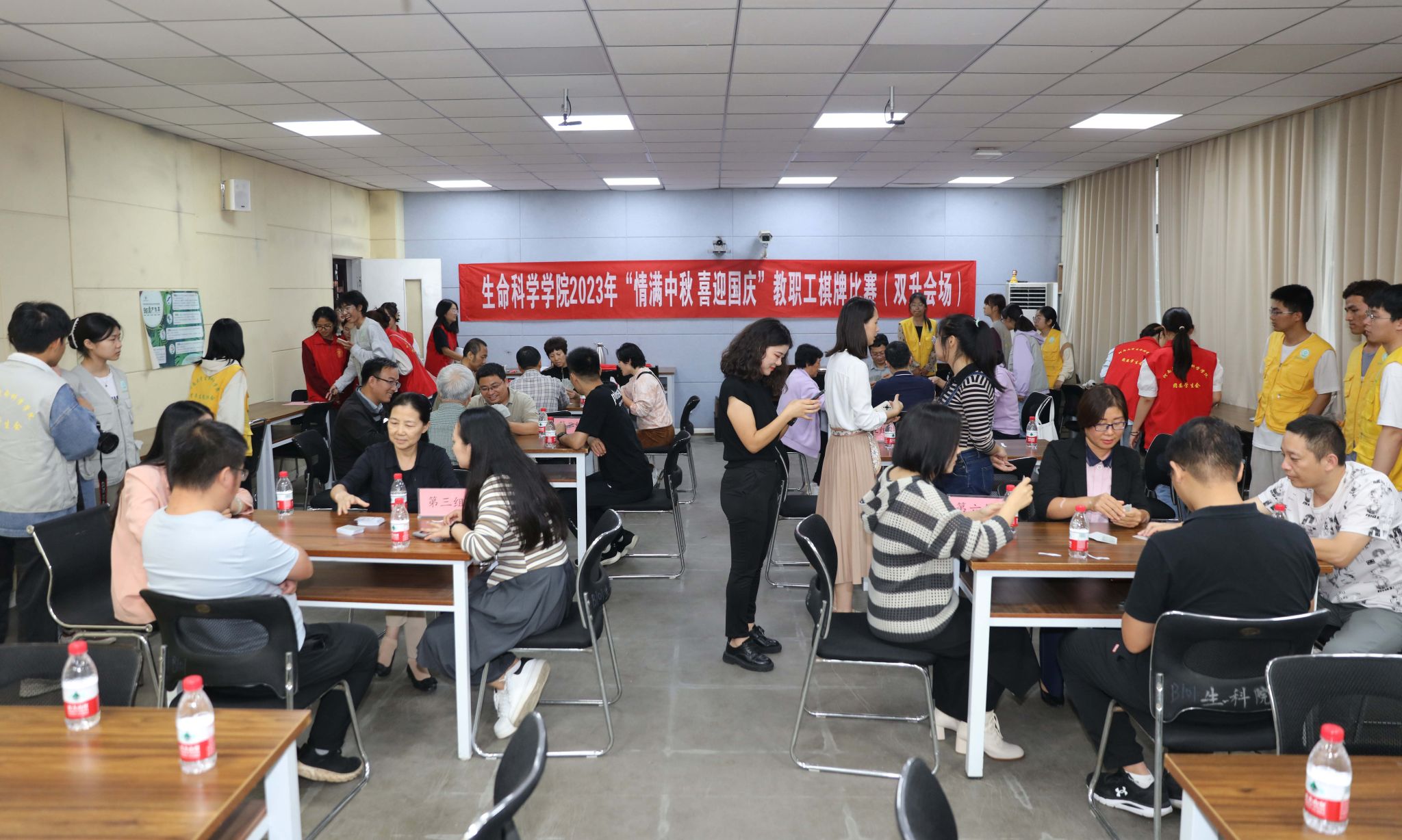 中秋月圆满,国庆祖国强。值此双节来临之际,9月28日下午,生命科学学院举行“情满中秋 喜迎国庆”教职工棋牌比赛。生命科学学院、棉花生物育种与综合利用全国重点实验室、省部共建作物逆境适应与改良国家重点实验室百余名教职工参加活动。