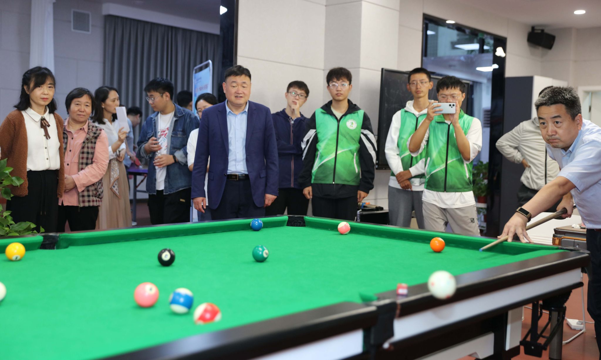 本次比赛共分为双升、五子棋、象棋和台球四个项目,老师们结合自身兴趣和特长自主报名。双升组老师齐聚一堂,随机组队,积极参赛,参赛选手配合默契,你追我赶,充分展示出高超牌技;五子棋比赛一方执黑,一方执白,落子有声,决“黑白之战”;台球比赛,不仅是技巧和力量的比拼,更是心理和策略的较量,现场欢呼声此起彼伏;象棋比赛,楚河汉界,你来我往,厮杀不断,伴随着一声声“将军”走向比赛的高潮,每一轮的获胜者进入下一轮比拼,并最终决出优胜奖。学院工会还贴心的为参赛教职工准备了茶水和小礼品等。