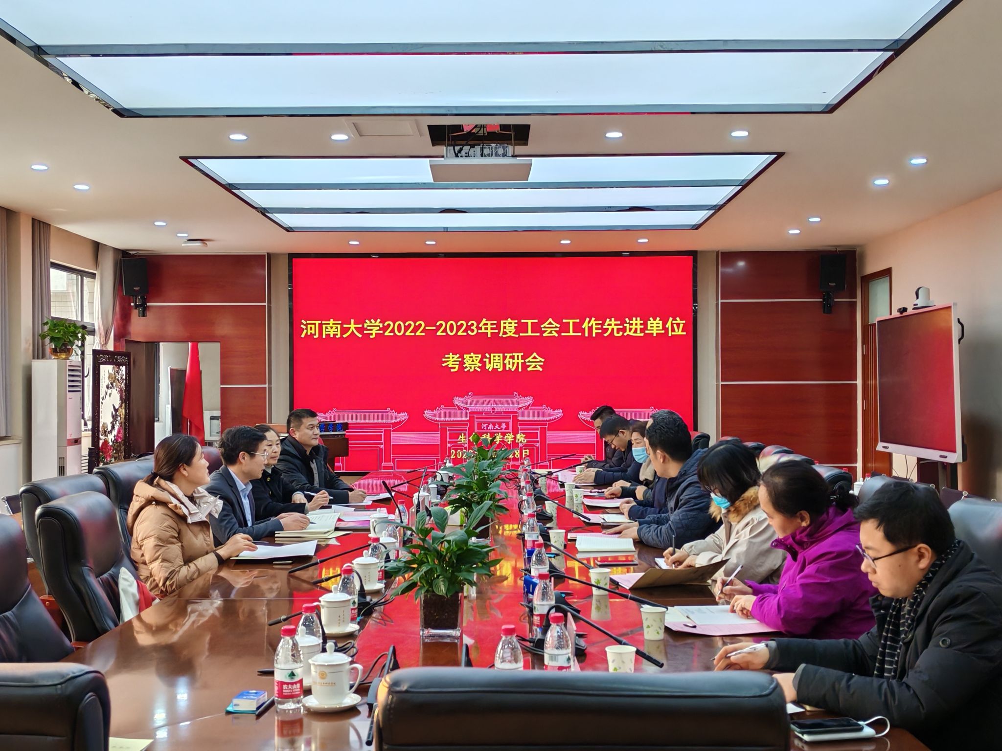 12月28日,校工会副主席徐飞一行莅临生命科学学院,对2022-2023年度学院工会工作先进单位申报工作开展调研指导。校工会第三调研验收组刘银华、仝兆静、刘振保陪同,生命科学学院党委书记吴建伟、工会副主席柴连琴及全体工会委员会成员参加会议。会议由生命科学学院党委副书记、工会主席宋永鹏主持。