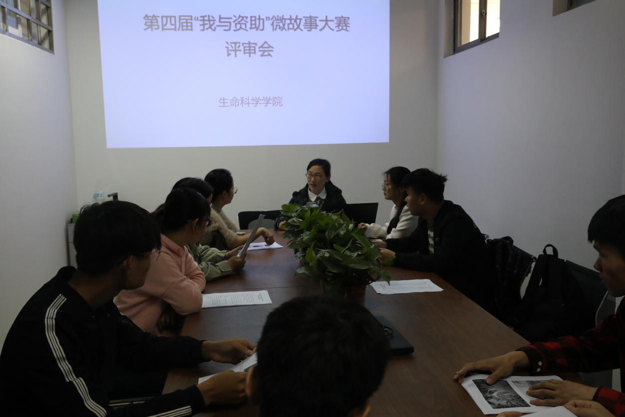 为深入学习贯彻党的十九大精神和习近平新时代中国特色社会主义思想,弘扬社会主义核心价值观,宣传家庭经济困难学生励志成才、自强不息的典型事迹,4月4日,生命科学学院极响应学校学生资助管理中心的号召,在前期宣传和作品征集的基础上,开展了第四届“我与资助”微故事大赛评审会。会议由学院2015级辅导员吴会芳老师主持,各年级资助负责人参加会议。