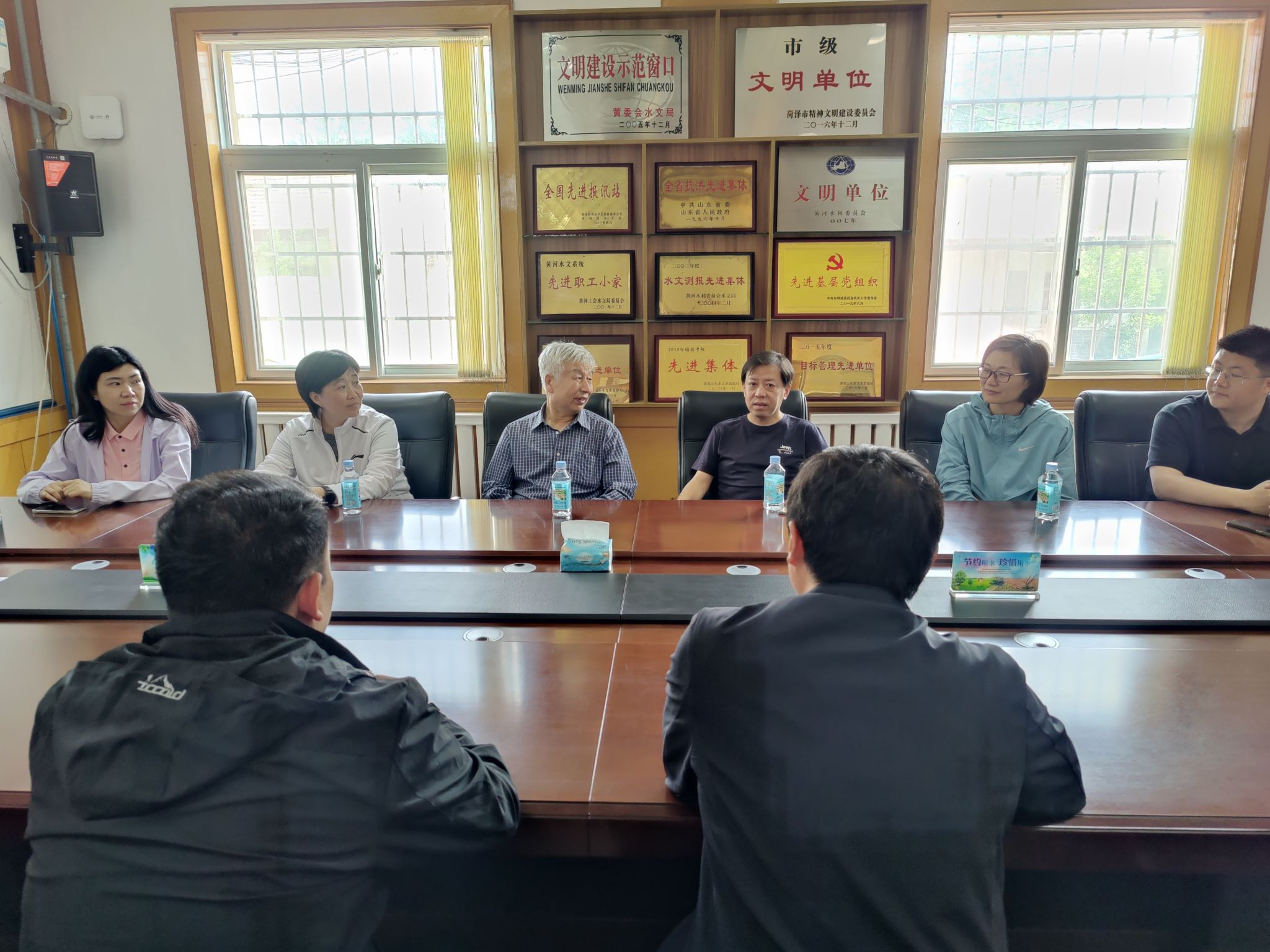联合考察期间,考察队先后前往水利部黄河水利委员会“西霞院水文站”和“高村水文站”进行现场调研,两站负责人热情接待了韩士杰教授一行,并在座谈会上介绍了各自的监测方法、长期数据积累与管理、水沙运动规律特点、防灾减灾机制、水资源利用和成果服务等方面内容,表达了水文站与考察单位之间的科技合作意愿,建议通过在水文站设立本科和研究生教学实验基地推动彼此的科技合作。韩士杰教授代表考察队给与积极回应和热忱致谢。