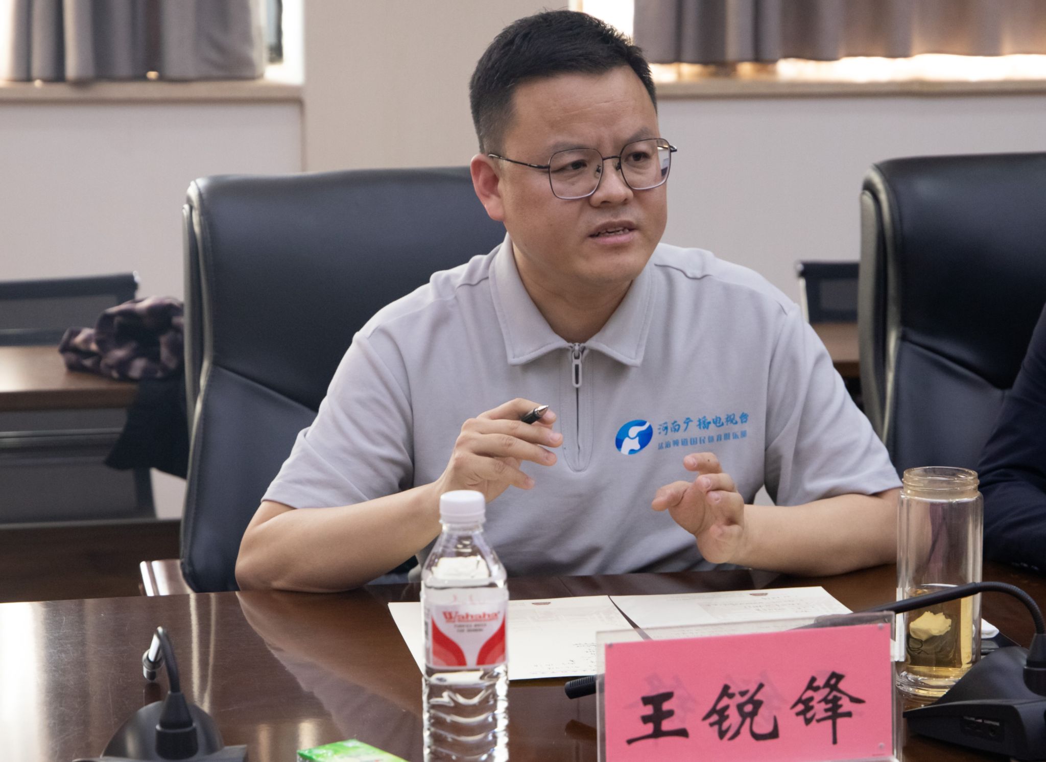 王锐锋对“双一流”学科在人才培养、科研探索、社会服务、精神传承等方面取得的成绩给予高度评价。他表示,法治频道始终致力于探索产学研媒融合发展的新路径,多年来深耕媒体融合创新领域,期待双方发挥优势效能,通过《名校名师名课堂》、黄河流域生态保护专题报道等途径资源互补、协同创新,进一步完善传播矩阵建设、搭建对外传播载体,为中原高等教育再建新功提供宣传渠道。